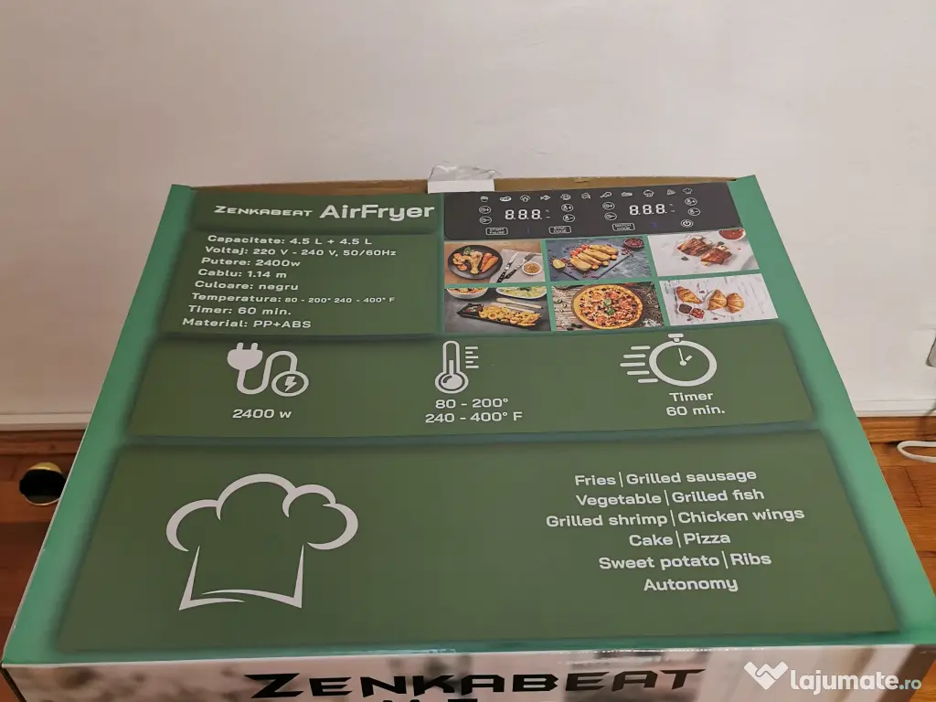 Friteuza cu aer Zenkabeat V2 Ultimate Dual-Pot Airfryer 2400 W, capacitate 9L, 11 programe presetate, Tehnologie Deep-Fry, temperatura ajustabila 80-200°C, timer 0-60 minute, poturi detasabile, display digital, Negru