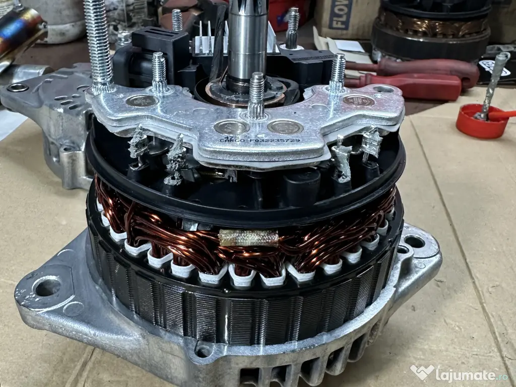 Alternator RECONDITIONAT 100% Hitachi 100A Inlocuit: Rulmenti NSK, Simering/Oringuri Cargo, Platou diode/regulator Cargo, Stator/Rotor Cargo, Izolator ext/interior Cargo, doar carcasa si pompa de vacuum au ramas Hitachi.