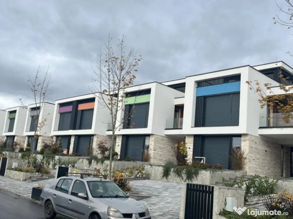 Blitz ofera spre vanzare un ansamblu de case insiruite, pozitionate intr-o locatie aerisita si foarte buna din cartierul Iris, cu o panorama superba deasupra Clujului. Au o suprafata utila de 120 mp, cu un regim de inaltime parter + etaj + nivelul superior unde este accesul spre o terasa spectaculoasa de 40mp din care 16mp sunt acoperiti. Casa este astfel compartimentata pe fiecare nivel in parte: Parter: hol, camera tehnica si spalatotie, baie, living cu bucatarie open space. Etaj: 3 dormitoare, 2 bai, hol si 2 terase . Deasupra etajului se afla terasa circulara de 40mp de unde aveti acel view superb peste Cluj. Are teren in suprafata de 390mp, cu o gradina amenajata cu plante si gazon, impartita in doua zone, o zona de relaxare cu zona de gratar si vatra de foc, iar cealalta parte amenajata cu plante si gazon avand amenajare peisagistica completa. De asemenea, dispune de 3 locuri parcare, din care unul acoperit, care dispune si de priza pentru incarcarea masinilor electrice. Materialele folosite la constructia caselor sunt din cea mai inalta gama premium, cu mult peste ceea ce ofera piata constructiilor din ziua de astazi. Polistirenul(15-35 cm) si vopseaua decorativa sunt de la Caparol iar hidroizolatia teraselor s-a facut cu membrana EPDM de la Firestone. Casele sunt placate cu piatra naturala de Vistea, iar la placarea teraselor s-a folosit lemn de pin termotratat. Tamplaria este Salamander BluEvolution 82 cu 3 straturi de sticla si feronerie Roto NT cu montaj profesional cu banda butilica. Usa de la intrare este premium, de aluminiu cu maner spatial si este de cea mai buna calitate(nu PVC). Balustradele de sticla de la terase sunt laminate si securizate(configuratie sticla 882). Pavajul folosit pentru curti este de la Viastein, iar spatiile verzi sunt pregatite cu sistem de irigatii, plante diverse cu adaptabilitate si rezistenta la clima locala, precum si cu intretinere facila. La interior avem incalzire in pardoseala si este de la Uponor, cu grup separat de pompare pe fiecare etaj. Centrala si pufferul sunt de la Ferolli si sunt varf de gama. Baile vin semifinisate cu cadrele de wc incastrate, iar instalatia sanitara in toata casa este realizata tot pe sistem de la Uponor(cu separare pe fiecare nivel) Circuitele electrice sunt executate dupa un proiect de amenajare interioara care va fi pus si acesta la dispozitia viitorilor proprietari si este gandit in cel mai mic detaliu. Geamurile sunt de dimensiuni mari, asigurand foarte multa lumina naturala in interior. Datorita expunerii sudice, pentru confort termic, pe fatada sudica sunt prevazute jaluzele exterioare cu automatizari Somfy cu actionare si programare din telefonul mobil. Predarea se face la stadiul semifinisat plus. Camera tehnica este finisata, iar in restul casei peretii se predau la stadiul finisat, iar tavanele au prevazute inclusiv spoturile. La cerere putem aduce cu echipele noastre casa la stadiul de finisat, usurandu-va exact partea cea mai complicata atunci cand discutam de mutarea intr-o casa noua. La pret se adauga TVA de 21% ! Nu mai sta pe ganduri, te astept sa-ti prezint aceasta proprietate ! Cod ofertă / ID BLITZ: P93634 Id intern: P93634 Număr niveluri imobil: 2 Număr Băi: 3 Nr. locuri parcare: 3