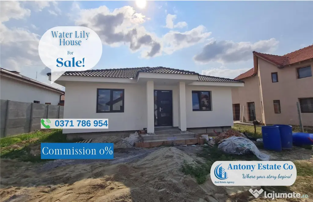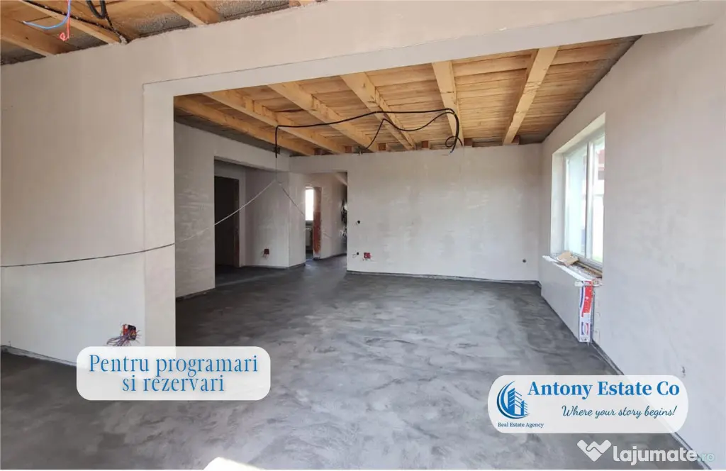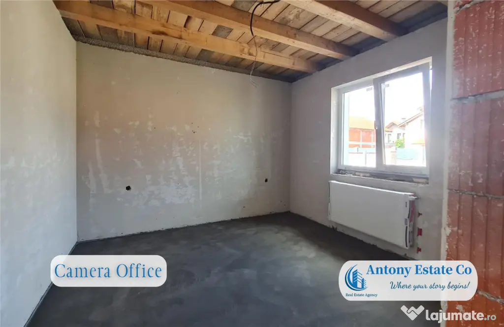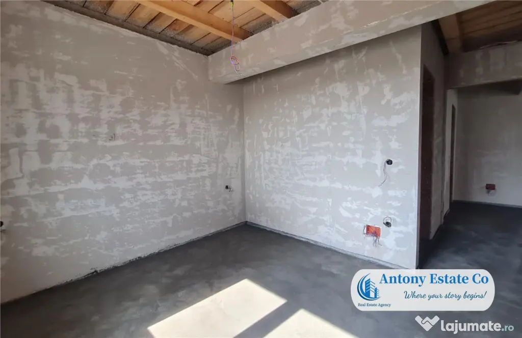 Casa va fi predata cu instalatiile electrice montate complet, vopsita in alb, tavanul finalizat si cu utilitatile racordate in casa.