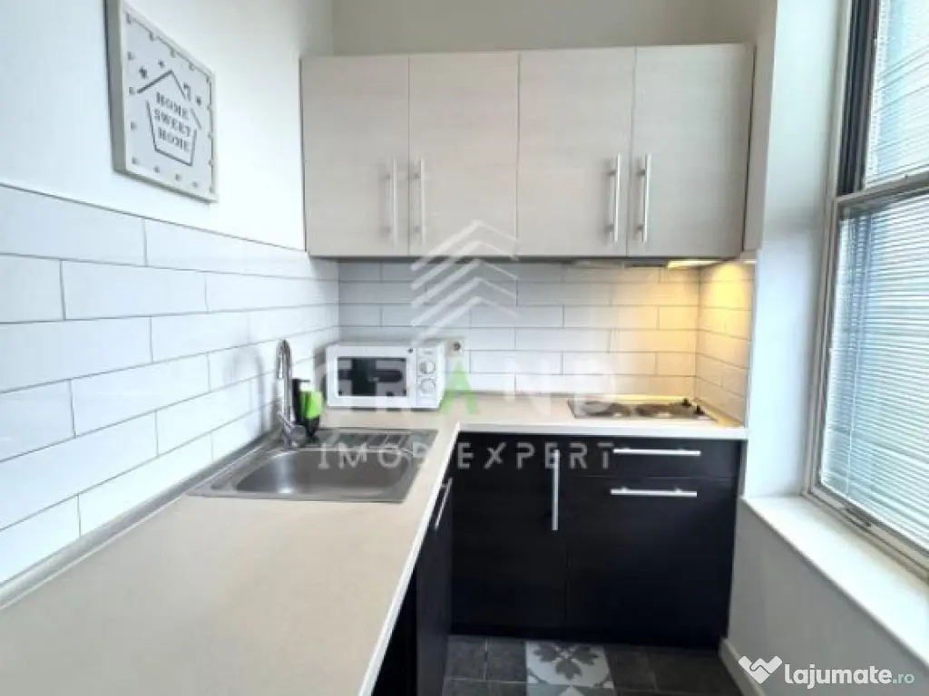 Grand Imob Expert vă propune spre închiriere un apartament cu 1 cameră, situat la parterul unui imobil nou, într-o zonă liniștită din Piața 1 Mai / Tăbăcarilor. Locuința are o suprafață utilă de 36 mp și este compartimentată astfel: • cameră spațioasă cu pat, open-space cu bucătăria și loc de luat masa; • baie; Apartamentul este mobilat și utilat complet, cu: frigider, plită electrică, aer condiționat, etc. Imobilul dispune de centrală termică pe clădire, ceea ce menține costurile de întreținere reduse. Un avantaj important al apartamentului este faptul că are uși foarte late și acces facil, fiind potrivit inclusiv pentru persoane cu mobilitate redusă sau care utilizează scaun rulant, iar poziționarea la parter oferă acces comod. Zona este liniștită și bine conectată, cu mijloace de transport în comun, magazine și puncte de interes în apropiere. Loc de parcare exterior inclus, supravegheat video. Pentru informații suplimentare sau programarea unei vizionări, nu ezitați să ne contactați. Id intern: P155763 Confort: 1 Tip imobil: Bloc de apartamente Nr. locuri parcare: 1