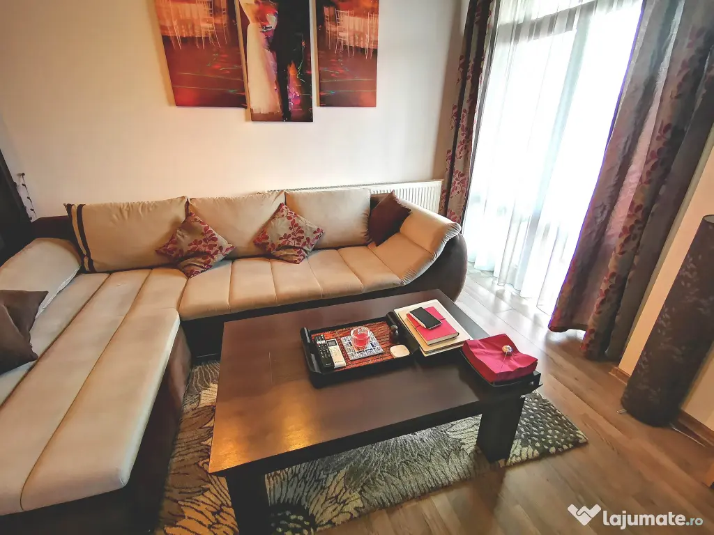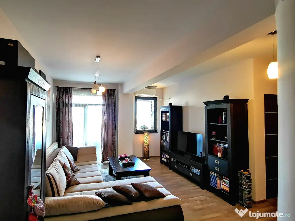 Inchiriez Ap. 2 camere, 57 mp utili, etaj 3/ 4, cu balcon deschis de 8 mp, mobilat cu obiecte de calitate din lemn masiv furniruit, utilat complet cu electrocasnice Electrolux, aer conditionat nou Daikin, centrala termica noua Wiessmann, loc de parcare suprateran, in curte securizata, cu poarta, acces telecomanda.
