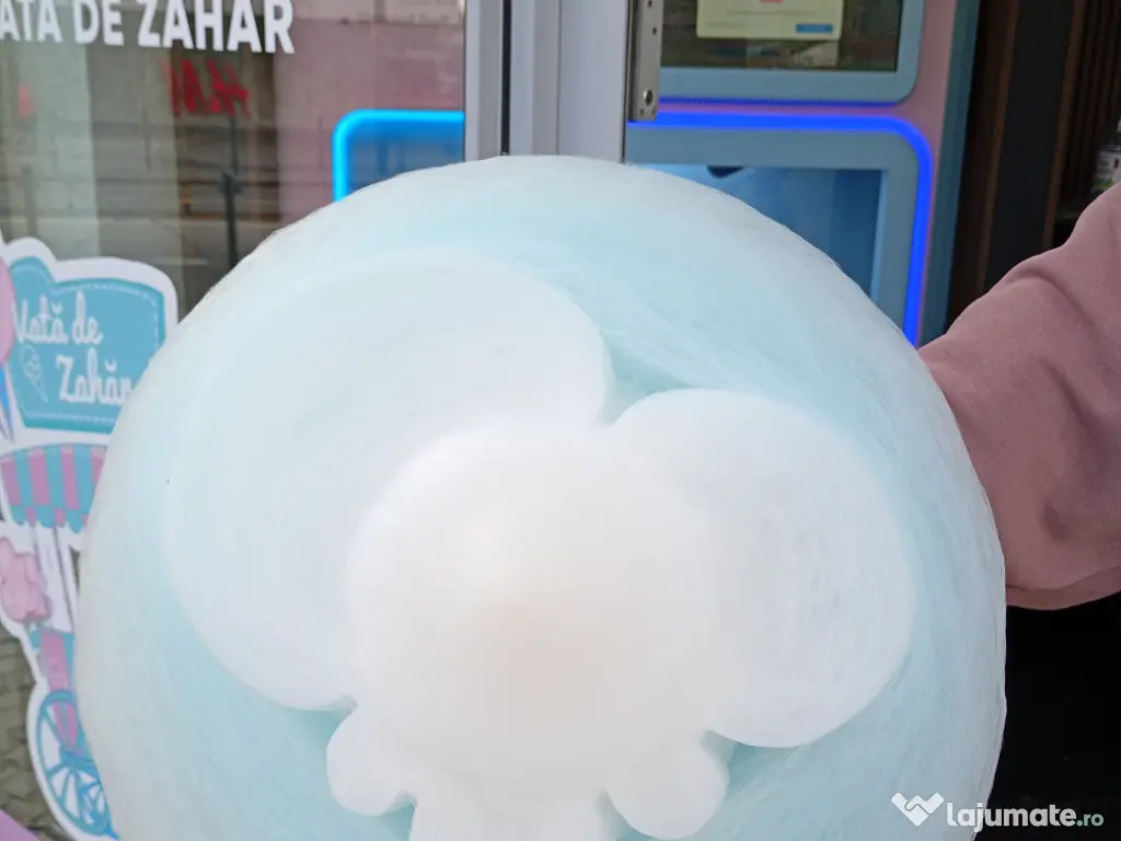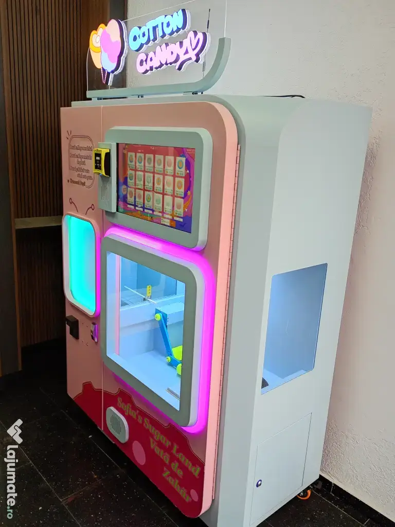 Aparat automat de vată de zahăr tip vending, ideal pentru venit pasiv în locații cu trafic mare (mall, parc, evenimente).