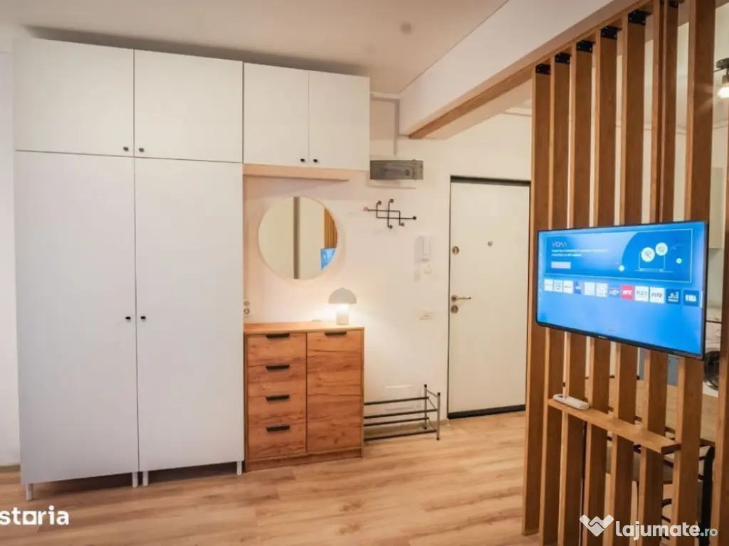 spre închiriere o garsonieră modernă, open-space, mobilată și utilată integral. Proprietatea este situată în zona Berceni, Apărătorii Patriei, sector 4, într-un bloc nou tip boutique, la etajul 1 din 3. Disponibilitate - imediată. Garsoniera se află la 10 minute de mers pe jos de stația de metrou Apărătorii Patriei. Alte puncte de interes în jur: Berceni Arena, parcul Tudor Arghezi, centre comerciale. Garsoniera dispune de centrală termică proprie, aer conditionat, tâmplarie PVC cu geam termopan tripan. Finisaje premium, un ambient elegant și primitor. Suprafață utilă: 30 mp Mobilată complet, cu mobilier și electrocasnice noi. Preferințe: Nefumător Fără animale de companie Confort: 1 Tip imobil: Bloc de apartamente Comision cumpărător: 50%