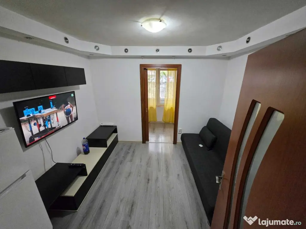 Garsonieră de închiriat, situată la parter, cu o suprafață utilă de 21 mp. Langa Kaufland Oltenitei Proprietatea se află la intersectia Oltenitei cu Iriceanu Ion. La o statie distanta se afla Metrou Aparatorii Patriei. Statie de tramvai si autobuz langa bloc. Baia dispune de duș, toaletă și chiuvetă, masina de spalat. Cuptor cu microunde, TV, frigider, A.C. Apa calda este la boiler. Caldura este pe curent electric. Aragazul functioneaza la butelie. Se percepe garantie o luna (1+1 luni l ainceput). Confort: 2 Tip imobil: Bloc de apartamente Comision cumpărător: 50%