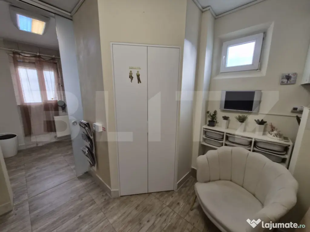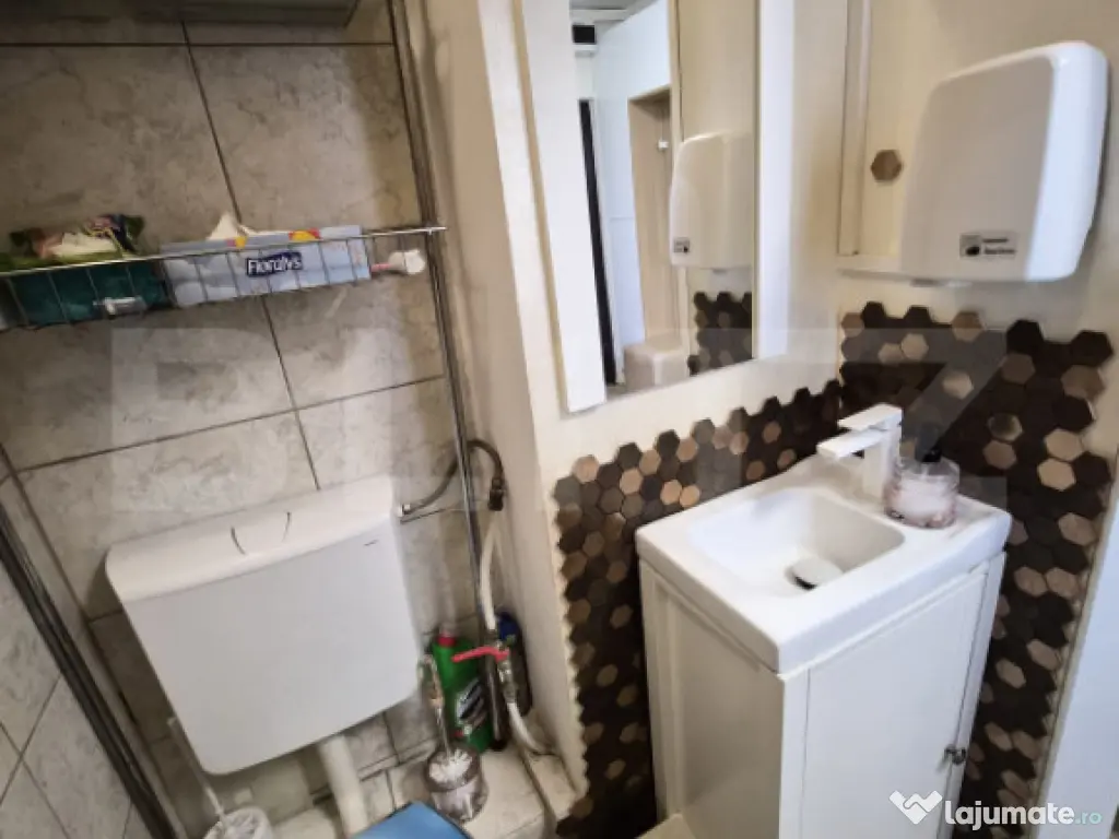 Blitz vă propune un spațiu de 27 mp, configurat tip garsonieră, situat la parterul unui bloc din zona Tudor, ideal pentru activități comerciale, birou, cabinet, salon sau punct de lucru. Proprietatea beneficiază de toate utilitățile în zonă și este amplasată foarte aproape de cele mai importante puncte de interes — zone comerciale, mijloace de transport, servicii și flux pietonal bun. Avantaje: • poziționare la parter – acces ușor • suprafață eficientă – 27 mp • potrivit pentru multiple activități comerciale • zonă foarte bine conectată • investiție bună pentru închiriere ulterioară Ideal pentru cei care caută un spațiu compact, bine poziționat, într-o zonă cu cerere ridicată. Cod ofertă / ID BLITZ: P163638 Id intern: P163638 Confort: 1 Tip imobil: Bloc de apartamente Număr Băi: 1