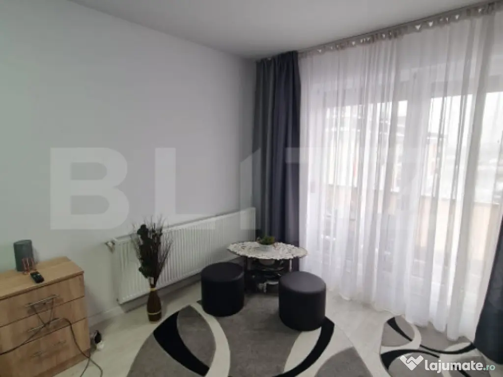 Blitz va propune spre vanzare apartament mobilat, utilat si 2 locuri de parcare. Apartamentul este amplasat intr-un bloc din caramida izolat termic la exterior, dispune de aer conditionat, centrala termica proprie, tamplarie PVC cu geam termopan, usa metalica la intrare si este compus din: antreu, bucatarie, dormitor, baie si balcon. Locurile de parcare sunt incluse in pretul afisat. Pentru mai multe detalii nu ezitati sa ne contactati. Cod ofertă / ID BLITZ: P161162 Id intern: P161162 Confort: 1 Tip imobil: Bloc de apartamente Număr Băi: 1 Nr. locuri parcare: 2