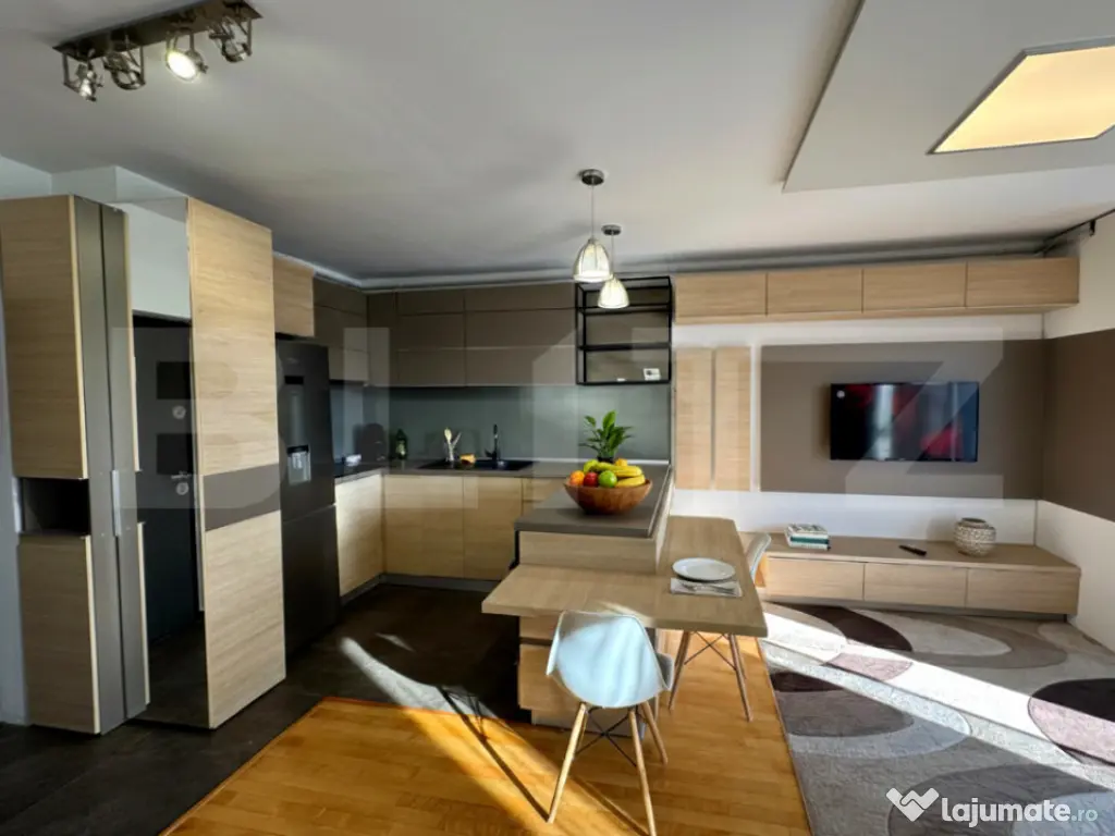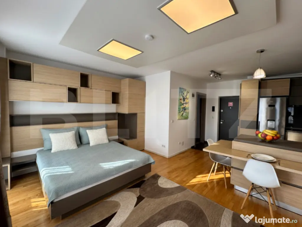 Blitz oferă spre închiriere un studio modern, cu terasă panoramică, situat în cartierul Andrei Mureșanu — alegerea ideală pentru un stil de viață urban, rafinat și confortabil! ✨???? ???? Detalii proprietate – Suprafață utilă: 40 mp – Compartimentare inteligentă: zonă de zi luminoasă cu pat matrimonial, spații generoase de depozitare, bucătărie open-space integrată armonios, baie modernă cu cadă – Terasă cu priveliște panoramică superbă – adevăratul atu al apartamentului ???? – Etaj: 5/8 – Situat într-un complex rezidențial modern, inaugurat în 2018 ✨ Dotări & finisaje premium – Finisat la cel mai înalt nivel, cu materiale și detalii atent alese – Bucătărie complet mobilată și echipată: cuptor electric, plită electrică, frigider, hotă – Centrală termică proprie și încălzire prin calorifere – Aer condiționat – Baie complet echipată, cu cadă – Loc de parcare inclus ???? Localizare premium – Amplasat într-unul dintre cele mai exclusiviste cartiere din Cluj-Napoca – Aproape de magazine, sală de fitness și stații de autobuz cu linie directă către toate punctele importante ale orașului – Zonă liniștită, cu acces rapid către centru și principalele zone de interes ???? Ideal pentru un profesionist sau un cuplu care își dorește un spațiu modern, eficient compartimentat, într-o zonă selectă, cu panoramă spectaculoasă asupra orașului. ???? Programează o vizionare și descoperă un apartament elegant, complet echipat și pregătit să devină noul tău cămin! Cod ofertă / ID BLITZ: P164764 Id intern: P164764 Confort: 1 Tip imobil: Bloc de apartamente Număr Băi: 1 Nr. locuri parcare: 1