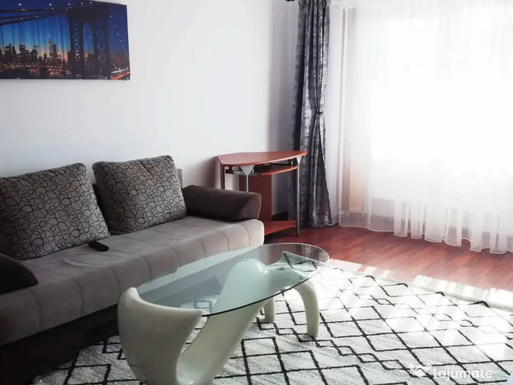 Apartamentul este mobilat si utilat complet: centrala termica, frigider, aragaz, TV, canapea extensibila, AC, masina de spalat rufe, baie cu geam, dulap mare in hol.