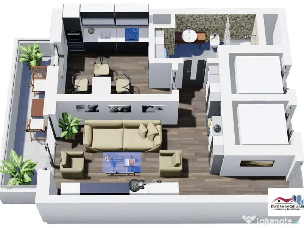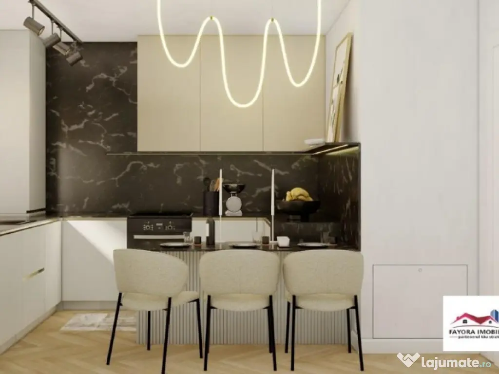 Apartament cu 1 Camera Tip A1.3 de Vanzare in Ansamblul Green Residence Apartament SMART ndash; confortul viitorului, disponibil acum in Ansamblul Green Residence! Apartamentul este ideal pentru cei care vor o experienta de locuire inteligenta proiectata pentru stilul de viata al prezentului. Fayora Imobiliare impreuna cu Partenerii bancari te ajuta sa obtii un credit imobiliar si daca lucrezi in strainatate, pentru ca se pot lua in calcul si veniturile obtinute in afara tarii. Comisionul este 0 pentru achizitionarea oricarui apartament in Ansamblul Green Residence. Apartamentele Tip A1.3 au spatii largi avand suprafata utila cu terasa inclusa de 47,93 mp, fiind compuse din: o camera, bucatarie, baie, hol si terasa. Fiind concepute cu camere mari si terase generoase, apartamentele confera spatii luminoase si natural iluminate. Finisaje generale: U#537;a de intrare icirc;n apartament: U#537;#259; HPL vopsit de grosime 5.2 cm cu icirc;nchidere multipunct SMART (deschidere prin amprent#259;, recunoa#537;tere facial#259;, cod sau cheie), include un sistem SMART de video sonerie, izolat#259; fonic, maner Gun Grey, toc #537;i pervaz MDF vopsit pacirc;n#259; icirc;n tavan. U#537;i interioare: U#537;i moderne, lisse (pline), din MDF vopsit, grosime de 40mm, cu toc reglabil, pervaze pe ambele p#259;r#539;i, 3 balamale reglabile, garnitur#259;, broasc#259; #537;i maner negru de calitate superioara. Utilit#259;#539;i: Apartamentele sunt contorizate individual #537;i sunt racordate la re#539;eaua electric#259; #537;i de gaze naturale. Conexiune la re#539;eaua de fibr#259; optic#259; (FTTH - fiber-to-the-home) prin re#539;eaua DIGI. Instala#539;ii termice: Fiecare apartament dispune de o central#259; termic#259; proprie icirc;n condensare Ariston 25KW, cu icirc;nc#259;lzire icirc;n pardoseal#259;. Centralele icirc;n condensare ofer#259; un consum redus de energie, cu pacirc;n#259; la 30% mai pu#539;in fa#539;#259; de o central#259; standard, datorit#259; randamentului mai ridicat. Finisaje interioare Apartamentele se predau in stadiu finisat, la cheie dupa cum urmeaza: Holuri: Peretii #537;i tavanele sunt zugr#259;vite icirc;n alb cu vopsea lavabil#259;, iar pardoseala este placat#259; cu parchet laminat de icirc;nalt#259; calitate. Fiecare apartament este dotat cu distribuitor-colector pentru icirc;nc#259;lzire icirc;n pardoseal#259;, tablou electric, comutator si 2 termostate. Buc#259;t#259;rii: Peretii sunt zugr#259;vi#539;i icirc;n alb. Pardoseala este placat#259; cu parchet laminat. Buc#259;t#259;riile sunt dotate cu central#259; termic#259;, icirc;nc#259;lzire icirc;n pardoseal#259;, instala#539;ie de gaze, senzori de gaze, prize simple #537;i duble. Livinguri: Peretii #537;i tavanele sunt finisate cu glet #537;i zugr#259;vite icirc;n alb. Pardoseala este din parchet laminat de 10 mm grosime. Livingurile sunt dotate cu, instala#539;ie TV, prize internet #537;i prize TV. Dormitoare: Finisajele sunt similare cu cele din living, cu parchet laminat de 10 mm #537;i icirc;nc#259;lzire icirc;n pardoseal#259;. B#259;i: Peretii sunt placati cu faian#539;#259; premium. Pardoseala este placat#259; cu pl#259;ci ceramice de calitate superioar#259;. Baia include obiecte sanitare de calitate, cum ar fi van#259; stand alone pe col#539;, mobilier vanity de calitate icirc;nalt#259; cu lavoar compozit / Corain #537;i baterii de calitate superioar#259;, WC cu func#539;ii SMART (icirc;nc#259;lzire capac, bideu, sp#259;l#259;tor, func#539;ie de deschidere / icirc;nchidere cu sensor, lumina LED pe timp de noapte) cu rezervor, radiator portprosop, prize #537;i ventilator. Finisaje exterioare si amenajare Confort: lux Tip imobil: Bloc de apartamente Număr Băi: 1