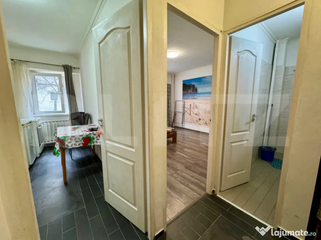 Blitz vă propune spre vânzare un apartament cu 1 cameră, tip D, decomandat, situat în zona Rogerius – una dintre cele mai căutate zone din Oradea, cu acces rapid la piață, centre comerciale, parcuri și mijloace de transport în comun. Apartamentul este amplasat la parterul unui imobil cu 4 niveluri, construit în anul 1989, și are o suprafață utilă de 24.82 mp. Compartimentarea este practică și funcțională, fiind compus din hol de acces, bucătărie separată, cameră și baie. Locuința a fost renovată anterior și se vinde complet mobilată și utilată, beneficiind de geamuri termopan, instalații electrice și sanitare schimbate anterior, precum și încălzire prin termoficare, cu calorifere. Orientarea sud-est oferă lumină naturală bună pe parcursul zilei. Datorită poziționării la parter și a amplasării într-o zonă intens circulată, proprietatea este potrivită atât pentru locuire, cât și pentru investiție. Oportunitate foarte bună într-o zonă cu cerere constantă. Hai cu mine la o vizionare! Cod ofertă / ID BLITZ: P163821 Id intern: P163821 Confort: 1 Tip imobil: Bloc de apartamente Număr Băi: 1