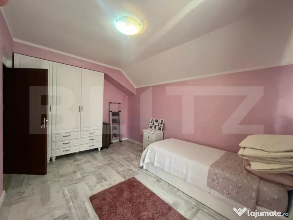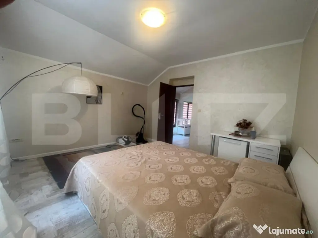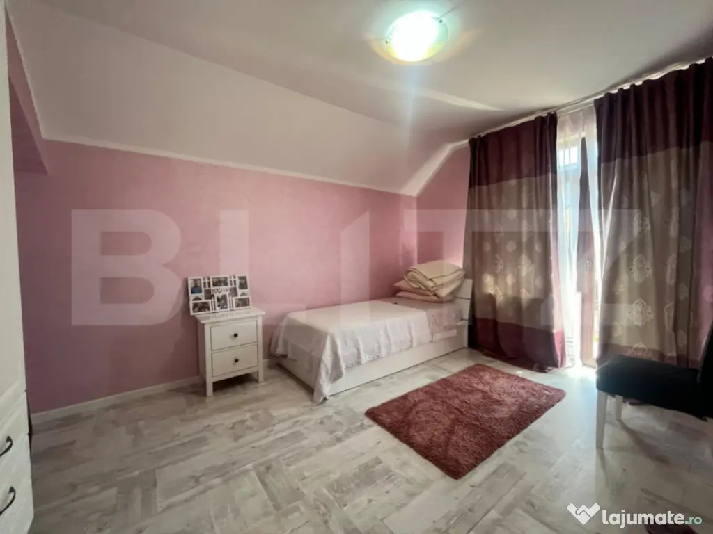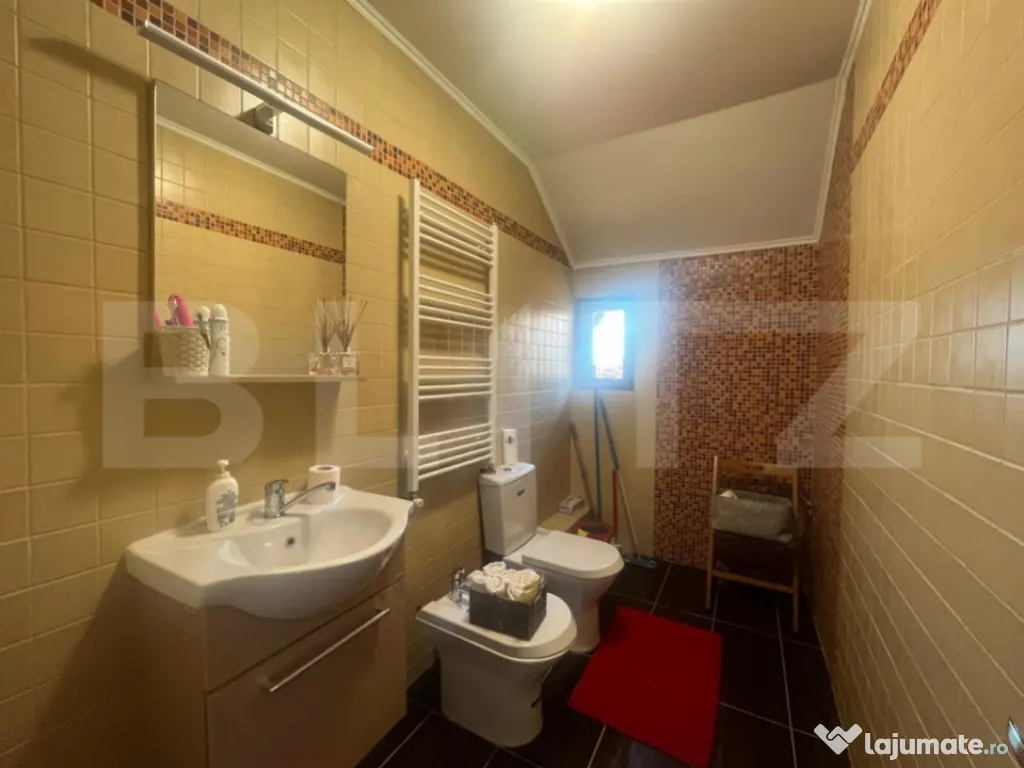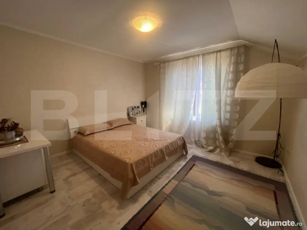 Blitz va propune spre achizitie un apartament reprezentand intregul etaj al unei case, intr o zona linistita de case din Lapus Arges, avand suprafata utila de 151 mp utili, si o curte individuala de 108 mp. Casa a fost construita in regim propriu in 2007 din caramida porotherm, avand o structura foarte solida din beton armat. Accesul se face prin casa scarii nefiind nimic cu drept de servitute sau la comun. Compartimentarea este foarte bine gandita asemeni unui apartament decomandat, din livingul extrem de spatios cu bucatarie open space, facanduse accesul catre cele trei dormitoare, baie si balcon. Unul dintre cele trei dormitoare este matrimonial cu dressing si baie in care regasim si un jacuzi de doua persoane. Finisajele folosite sunt premium, pe pereti fiind aplicat stucco venetian iar incalzirea se face cu ajutorul unei centrale pe gaz ProTherm si calorifere de aluminiu iar pentru perioada calduroasa de vara beneficiaza de doua AC uri. Proprietatea se vinde utilata si mobilata complet, mobilierul fiind de asemenea de buna calitate. Proprietatea beneficiaza si de un pod inalt pe toata suprafata casei care poate fi mansardat si folosit ca spatiu de locuit sau depozitare. Curtea este frumos amenajata cu gazon, pavele, pomi si trandafiri, fiind imprejmuita cu gard zidit de 2 m inaltime si partial gard viu, accesul in curte facanduse de pe o strada privata. Pentru mai multe detalii va asteptam la vizionare! Cod ofertă / ID BLITZ: P158630 Id intern: P158630 Confort: 1 Tip imobil: Casă/Vilă Număr Băi: 2 Nr. locuri parcare: 1