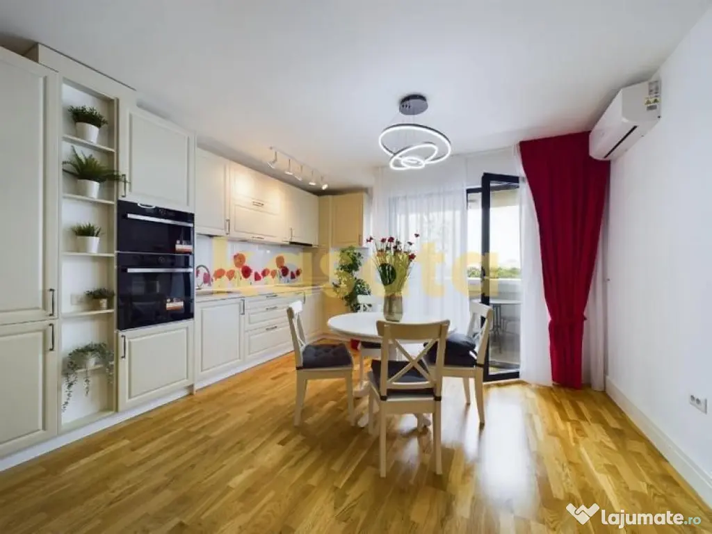 Cu o suprafață utilă de 57 mp și un balcon de 3 mp, apartamentul dispune de bucătărie open-space, integrată perfect cu livingul, creând un spațiu luminos și primitor. Dotările includ aer condiționat în living și dormitor, plită electrică, cuptor, cuptor cu microunde și frigider încorporat, oferind tot confortul necesar pentru viața de zi cu zi.