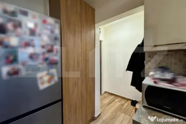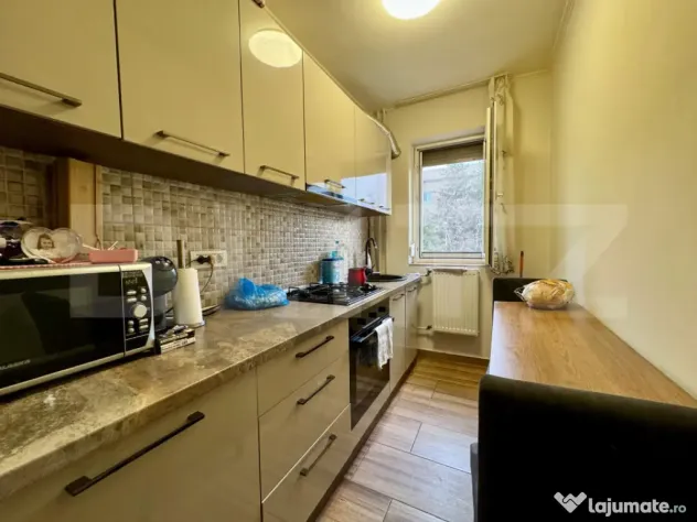 Locuința a fost renovată complet în urmă cu aproximativ 3 ani, beneficiind de instalații electrice schimbate, calorifere noi și mobilier modern, bine întreținut. Dispune de geamuri termopan, baie cu geam pentru aerisire naturală și finisaje moderne, cu parchet în camere și gresie în bucătărie și baie.