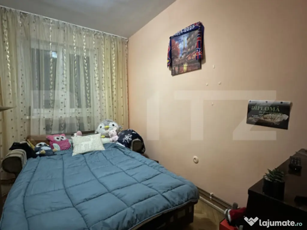 Blitz oferă spre vânzare apartament cu 2 camere, situat la etajul 4 din 4, într-o zonă liniștită, ideală pentru familii sau pentru investiție. Localizare excelentă – în imediata apropiere de școli, grădinițe, parcuri, supermarketuri și stații de autobuz, cu acces facil către toate punctele de interes ale orașului.] Apartamentul se vinde complet mobilat și utilat, fiind pregătit pentru mutare imediată. Dotări și îmbunătățiri: • Centrală termică schimbată recent • Geamuri termopan • Baie cu geam pentru aerisire naturală • Luminos și bine compartimentat Apartamentul este ideal pentru cei care își doresc confort, liniște și acces rapid la facilități urbane. Pentru mai multe detalii sau programarea unei vizionări, nu ezitați să mă contactați! Cod ofertă / ID BLITZ: P165672 Id intern: P165672 Confort: 1 Tip imobil: Bloc de apartamente Număr Băi: 1