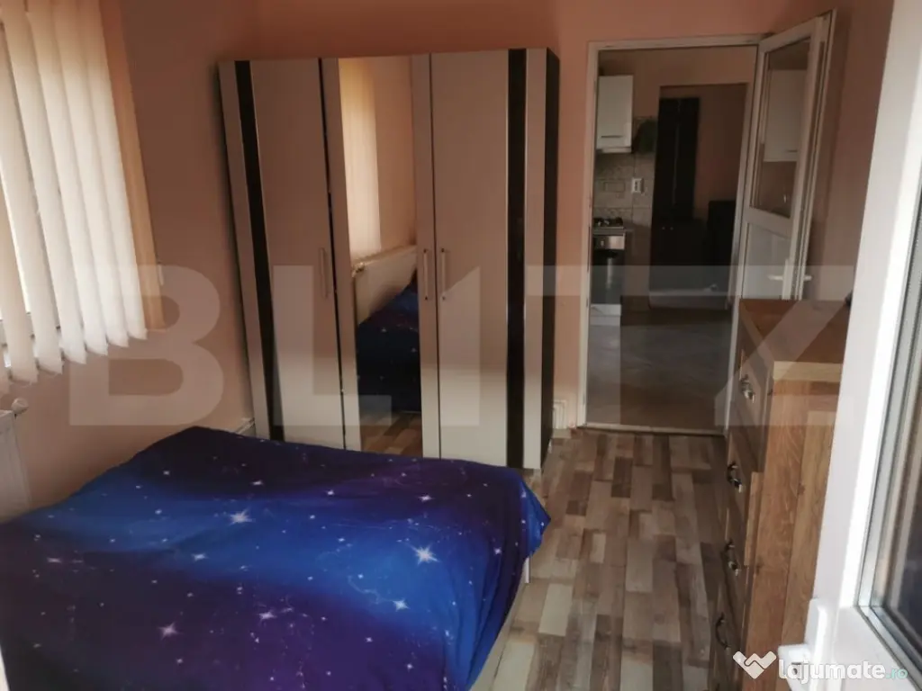 Blitz vă propune spre închiriere un apartament cu 2 camere, complet separat, situat la casă, în zona Podu de Fier – Pădurii, într-o locație liniștită, cu circulație auto restrânsă (fundac), dar foarte aproape de puncte de interes din centrul orașului. Apartamentul a fost complet renovat în 2022, este mobilat și utilat modern, având o compartimentare practică și funcțională. Caracteristici principale: - 2 camere separate - Centrală termică proprie pe gaz - Finisaje moderne: gresie, faianță - Complet mobilat și utilat - Acces la curte cu grădină, terasă și zonă de grătar Dotări: - Mașină de spălat - Frigider - Aragaz - TV - Internet Localizare excelentă, la aproximativ 150 m de stația Pădurii, cu acces rapid către: - Centru Civic – 700 m - Facultatea de Medicină – 1,5 km - Iulius Mall – 1,2 km - Palas Mall – 1,7 km - Piața Chirilă – 500 m Preț: 400 euro/lună Garanție: 400 euro Apartamentul este ideal pentru persoane care își doresc confort, liniște și acces facil către zona centrală a orașului. Cod ofertă / ID BLITZ: P161461 Id intern: P161461 Confort: 1 Tip imobil: Casă/Vilă Număr Băi: 1