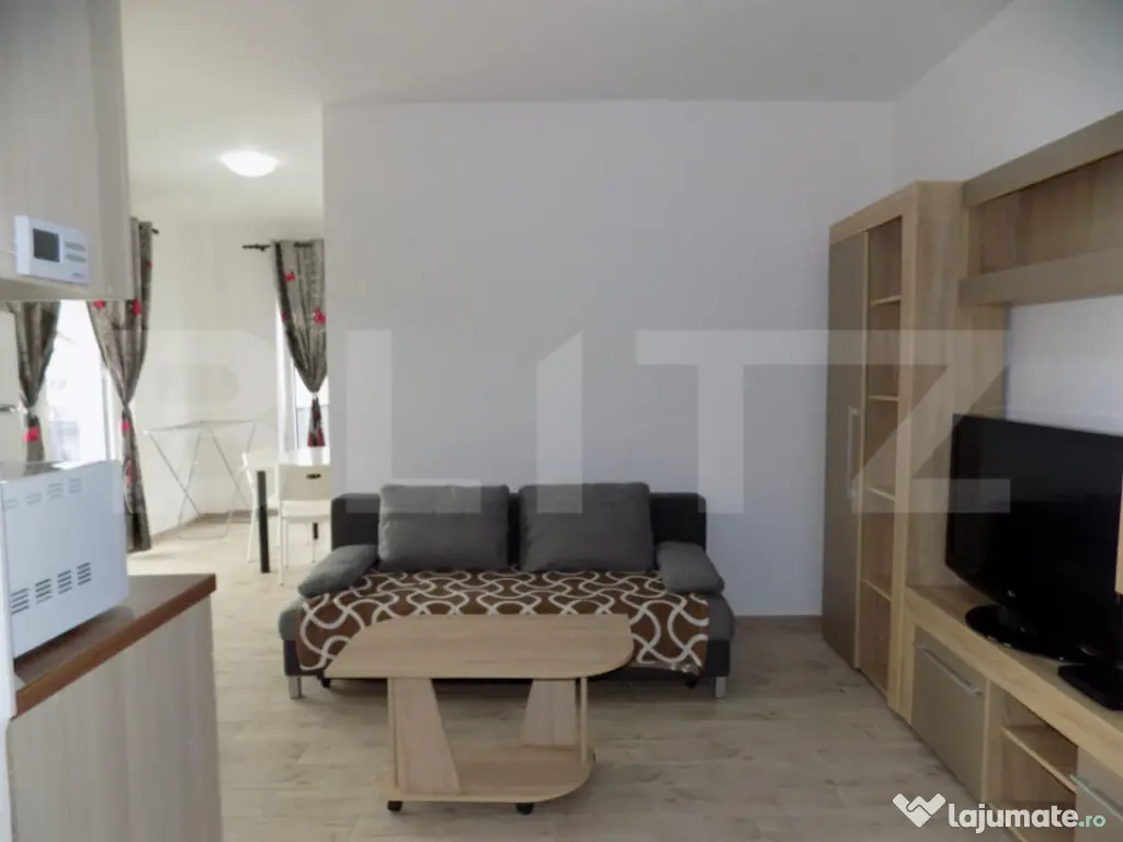 Blitz Imobiliare propune spre inchiriere un apartament modern cu 2 camere, situat in zona strazii Sarmisegetuza in cartierul Intre Lacuri, aproape de Iulius Mall. Este pozitionat la etajul 1, intr-un imobil cu 6 nivele si dispune de o suprafata utila de 40 mp. Apartamentul este semidecomandat, compartimentarea fiind gandita astfel: living open space cu bucataria, 1 dormitor, 1 baie si 2 balcoane. Finisajele interioare sunt de buna calitate, iar mobilierul este modern si personalizat pe spatiu. Beneficiaza de geamuri termopan cu tamplarie din PVC, usa metalica la intrare, iar incalzirea se realizeaza prin intermediul centralei termice proprii. Se inchiriaza complet mobilat si utilat, iar in valoarea chiriei este inclus si un loc de parcare. Cod ofertă / ID BLITZ: P55890 Id intern: P55890 Confort: 1 Tip imobil: Bloc de apartamente Număr Băi: 1