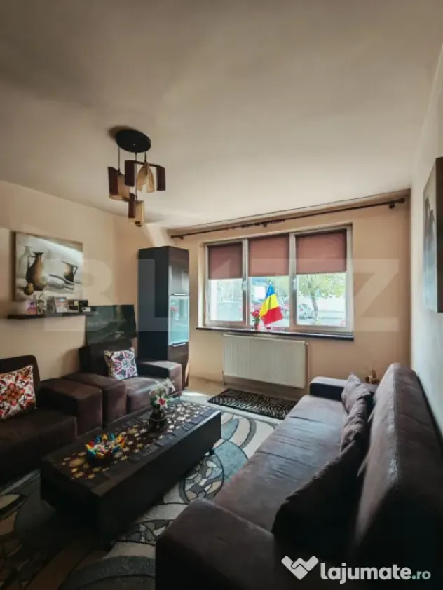 Blitz ofera spre vanzare apartament cu 2 camere situat in zona Micro II, TURDA. Acesta este situat la parterul unui imobil din caramida cu 4 nivele. Suprafata utila este de 44.09 mp. Apartamentul este semidecomandat, compartimentarea se prezinta astfel: hol, bucatarie spatioasa, living, 1 dormitor, 1 baie cu geam. Dispune si de centrala proprie. Posibilitate loc de parcare de la primarie. Apartamentul a fost restructurat recent. Instalatia termica a fost schimbata si ascunsa in perete. De mentionat ca in proximiatea apartamentului avem scoala, magazine, farmacie, mijloace de transport in comun, fiind situat in zona linistita a orasului. Pentru mai multe detalii programeaza o vizionare!