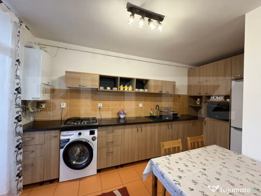 BLITZ propune spre închiriere un apartament cu 2 camere situat în Florești, zona Tineretului. Apartamentul este poziționat la etajul 2 într-un imobil cu regim de înălțime P+3, oferind un ambient liniștit și multă lumină naturală. Compartimentarea este semidecomandată, fiind organizată astfel: dormitor spațios, living cu bucătărie open-space, baie cu geam, balcon deschis. Locuința se oferă complet mobilată și utilată, fiind pregătită pentru mutare imediată. Bucătăria este echipată cu electrocasnice, iar spațiile de depozitare sunt generoase. Confortul termic este asigurat de centrală termică proprie cu calorifere, iar apartamentul beneficiază și de aer condiționat. În preț este inclus un loc de parcare exterior. Zona este foarte accesibilă, cu magazine, supermarketuri, farmacii, stații de transport în comun și alte puncte de interes în apropiere, oferind acces facil spre Cluj-Napoca. ???? Disponibil imediat Vă aștept la vizionare! Cod ofertă / ID BLITZ: P166656 Id intern: P166656 Confort: 1 Tip imobil: Bloc de apartamente Număr Băi: 1 Nr. locuri parcare: 1