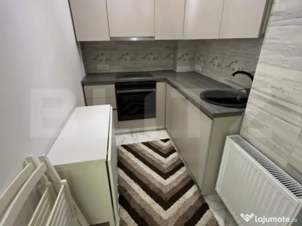 Blitz vă propune spre închiriere un apartament modern cu 2 camere, situat ultracentral, în imediata apropiere a Teatrului Național din Târgu Mureș. Apartamentul este amplasat la parter și beneficiază de o compartimentare practică și eficientă: 2 camere spațioase, 2 băi moderne, bucătărie complet utilată și o terasă generoasă, ideală pentru relaxare. Proprietatea a fost renovată integral în urmă cu 2 ani și se prezintă într-o stare excelentă, fiind gata pentru mutare imediată. Dotări și beneficii: Electrocasnice noi, aflate încă în garanție Încălzire în pardoseală, pentru un confort termic superior Terasă încălzită Geamuri tripan, stil scandinav, cu izolație fonică și termică foarte bună Finisaje moderne, de calitate premium În plus, apartamentul dispune de loc de parcare inclus și acces securizat prin poartă electrică. Avantaje: Locație ultracentrală, într-una dintre cele mai căutate zone din Târgu Mureș Apartament modern, complet mobilat și utilat Ideal pentru persoane active, cupluri sau expați, care își doresc confort și acces rapid la punctele de interes ale orașului Datorită poziției excelente și dotărilor oferite, acest apartament reprezintă o opțiune ideală pentru închiriere, combinând confortul, siguranța și accesibilitatea. Cod ofertă / ID BLITZ: P163954 Id intern: P163954 Confort: 1 Tip imobil: Bloc de apartamente Număr Băi: 2 Nr. locuri parcare: 1