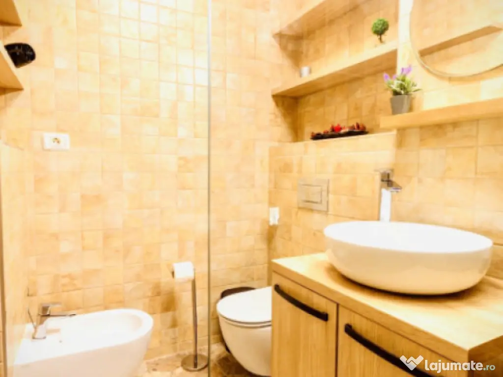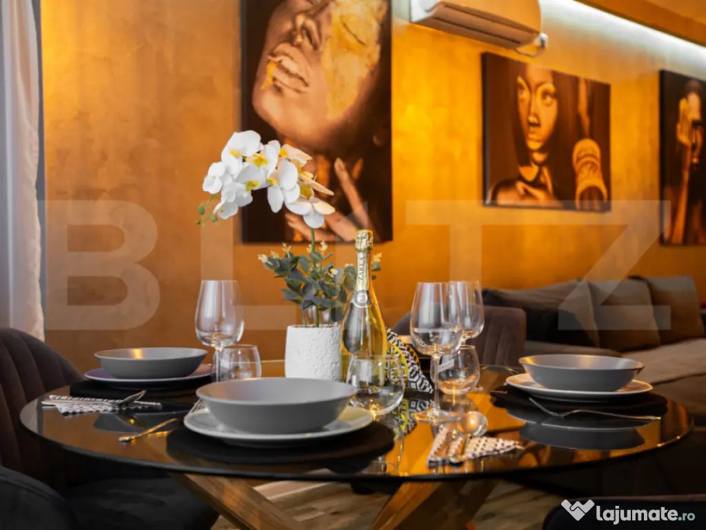 Blitz va oferă spre vânzare un apartament modern cu 2 camere, situat într-un complex rezidențial nou, de top, foarte bine cotat, într-o zonă premium a orașului. Apartamentul este poziționat la etajul 7 din 8, beneficiind de priveliște frumoasă și deschisă. ???? Compartimentare ideală: • dormitor confortabil • living generos open-space cu bucătărie complet utilată • baie modernă Locuința este complet mobilată și utilată, cu mobilă realizată la comandă și electrocasnice de top, finisajele fiind atent alese pentru un stil modern și elegant. Apartamentul se vinde exact ca în fotografii și este gata de mutare imediată. Avantaje & facilități ale complexului: ✔ complex rezidențial modern, cu acces securizat ✔ spații verzi amenajate ✔ magazine, cafenele și restaurante la parter ✔ sală de fitness și servicii diverse în incintă ✔ acces facil către punctele de interes ale orașului ???? Ideal pentru un cuplu tânăr care își dorește confort și stil de viață urban ???? Excelent ca investiție – apartamentul a fost închiriat cu succes în regim hotelier (Airbnb/B&B) ???? Proprietate liberă, disponibilă imediat O oportunitate excelentă într-o zonă exclusivistă, perfectă atât pentru locuire, cât și pentru randament investițional foarte bun. Va așteptăm cu drag sa programați o vizionare! Cod ofertă / ID BLITZ: P163185 Id intern: P163185 Confort: 1 Tip imobil: Bloc de apartamente Număr Băi: 1 Nr. locuri parcare: 1