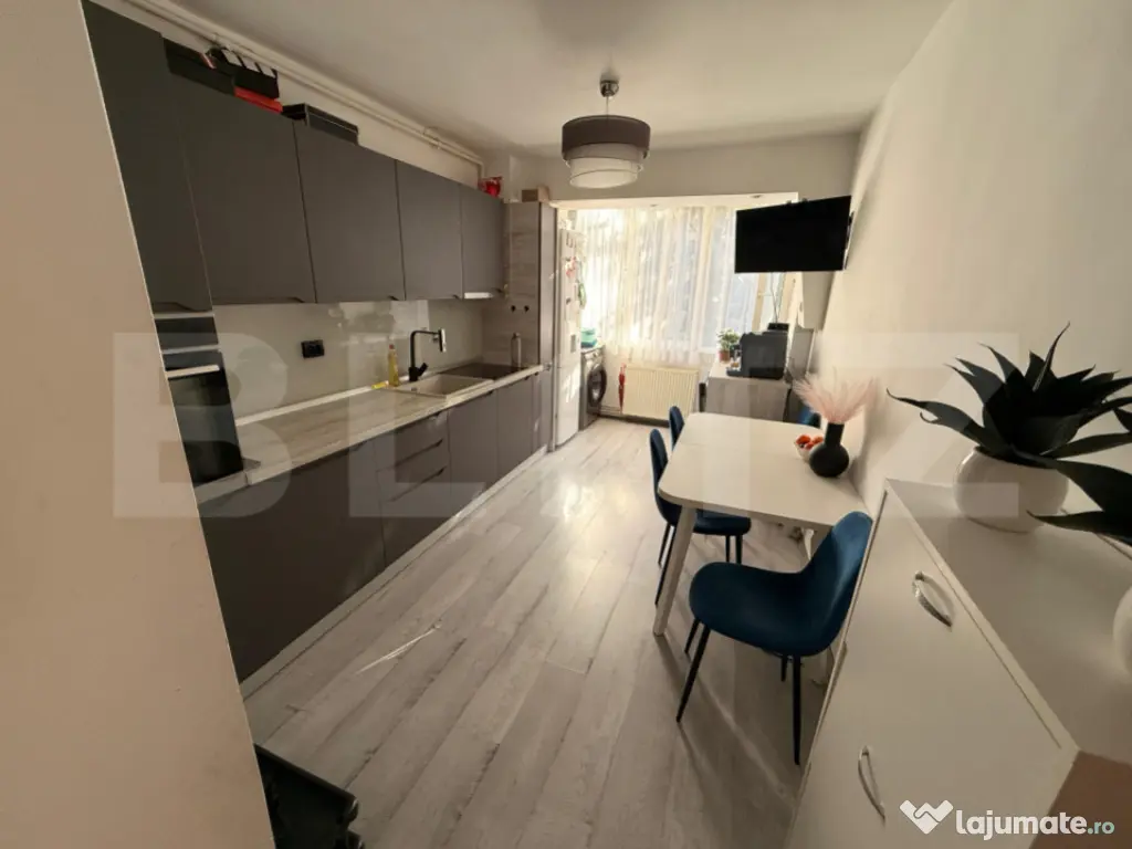 Blitz va propune spre vanzare un apartament de 2 camere cu suprafata utila de 50 mp, situat la etajul 2 din 10, intr-un bloc cu lift. Proprietatea este complet mobilata si utilata, fiind pregatita pentru mutare imediata, fara investitii suplimentare. Avantaje si dotari: Bucatarie moderna, complet echipata cu electrocasnice Electrolux si Samsung (cuptor, plita, frigider, hota, masina de spalat) Living luminos si dormitor spatios, amenajate cu mobilier de calitate Finisaje recente, design modern si functional Etaj intermediar (2/10), acces facil cu liftul Zona linistita, cu acces rapid la transport in comun, scoli, gradinite si magazine Este alegerea perfecta pentru cei care isi doresc un camin primitor, intr-o zona buna, dar si o investitie sigura pentru inchiriere. Te asteptam sa ne contactezi pentru a programa o vizionare si sa te convingi de tot ce am descris noi mai sus. Cod ofertă / ID BLITZ: P153213 Id intern: P153213 Confort: 1 Tip imobil: Bloc de apartamente Număr Băi: 1