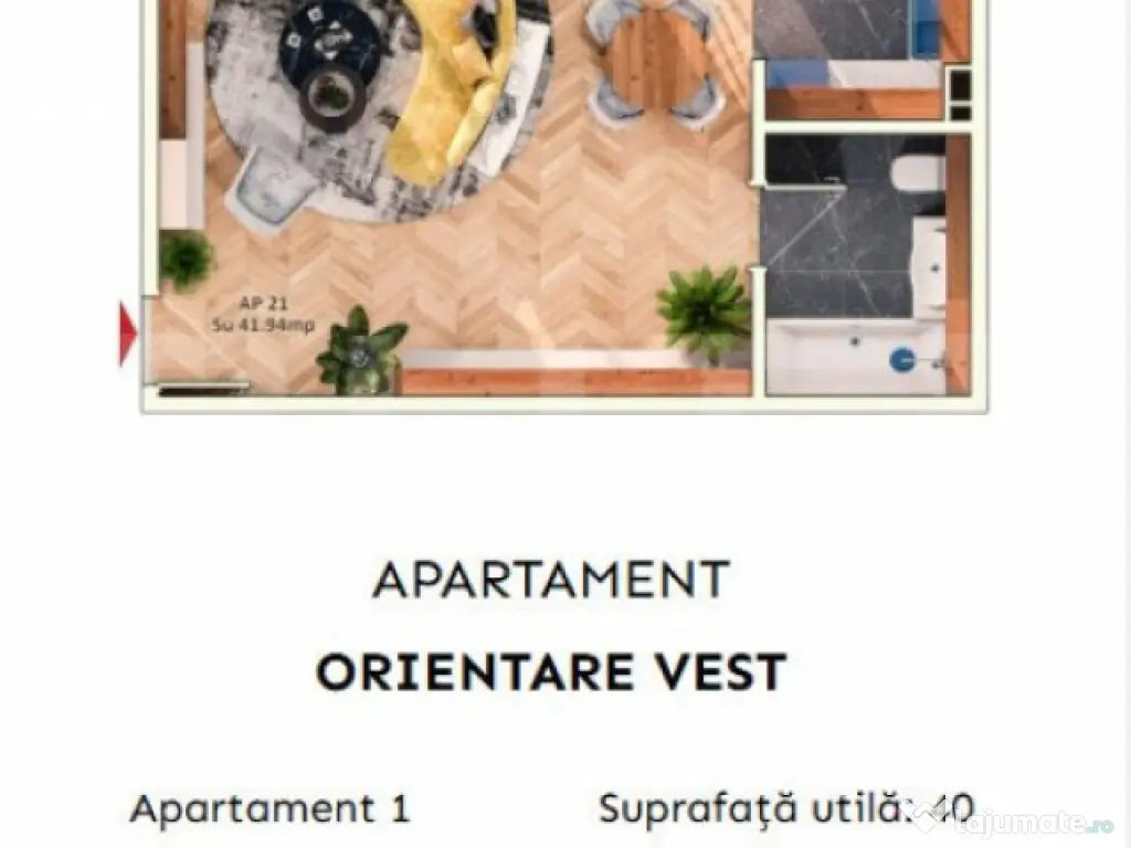 Apartament 1 camera, 37 mp, balcon, parcare subterana
