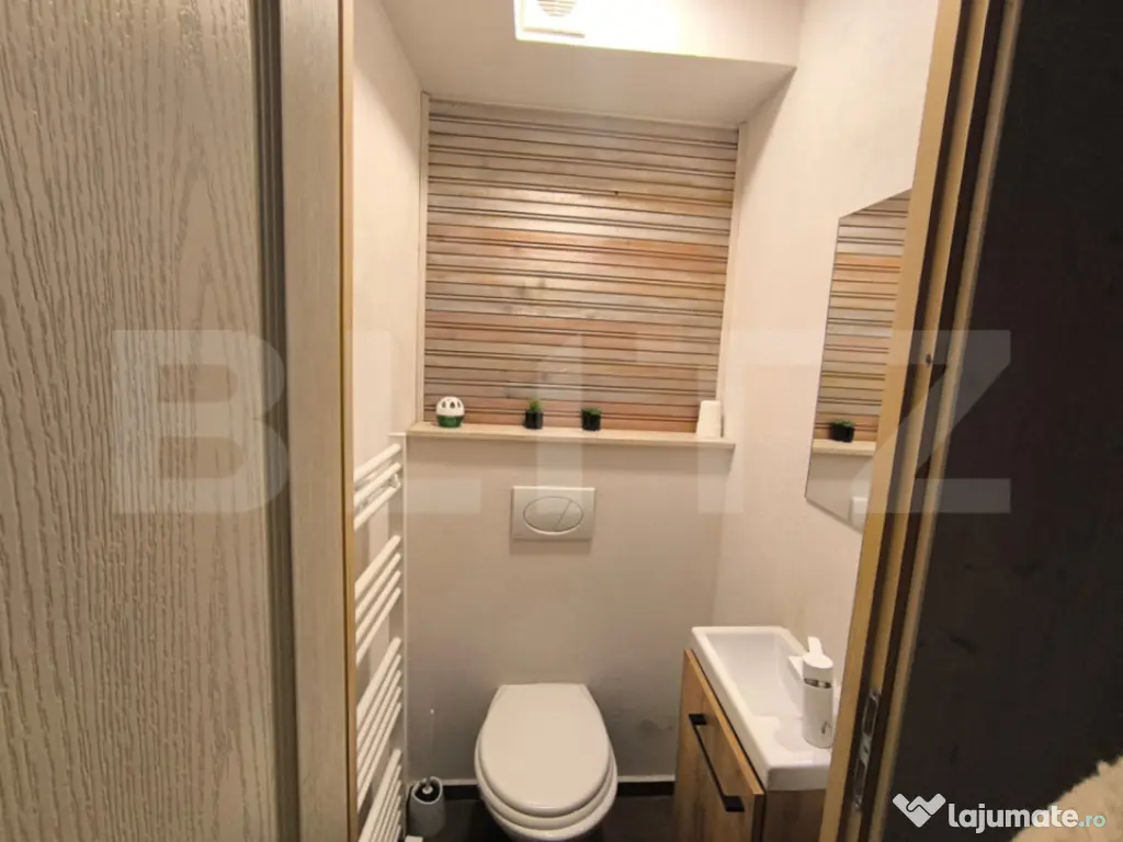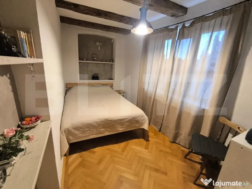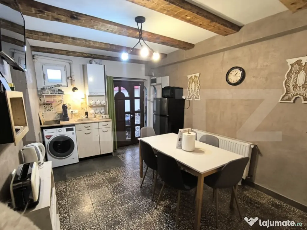Blitz va propune spre vânzare un apartament modern, situat într-o zonă premium din Centrul Istoric al Brașovului, la doar 5 minute de mers pe jos până în Piața Sfatului. Stradă liniștită, cu clădiri istorice, acces rapid la restaurante, cafenele, trasee montane și toate atracțiile turistice. Caracteristici apartament: ~Suprafață utilă: 52 mp ~2 camere ~2 băi (o baie completă + baie de serviciu) ~Parter – acces facil, ideal și pentru turiști ~Complet renovat, cu finisaje moderne ~Mobilat și utilat integral, gata de locuit ~Centrală termică proprie – costuri reduse ~Compartimentare eficientă ~Fără investiții suplimentare necesare Proprietatea este ideală atât pentru locuit, cât și pentru investiție în regim hotelier, având o amplasare excelentă și fiind pregătită pentru mutare imediată. Cod ofertă / ID BLITZ: P159206 Id intern: P159206 Confort: 1 Tip imobil: Casă/Vilă Număr Băi: 2