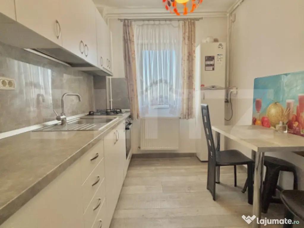 Blitz vă propune spre vânzare un apartament cu 2 camere, situat la etajul 2 al unui bloc cu regim redus de înălțime (P+2E), într-o zonă liniștită și bine dezvoltată, în apropierea spațiilor verzi, a magazinelor, centrelor comerciale, spălătoriei auto și a mijloacelor de transport în comun, Detalii proprietate: - Suprafață utilă: 51 mp - Balcon: 6 mp, spațios și luminos - Compartimentare: decomandată, eficientă și bine gândită Etaj: 2 / 2 Dotări și finisaje: - Centrală termică proprie, cu distribuirea căldurii prin calorifere - Bucătărie închisă, separată de zona de zi - Baie cu cadă și geam pentru aerisire naturală - Spații generoase de depozitare - Bloc izolat termic și acoperiș din țiglă. Apartamentul se vinde mobilat și utilat, exact ca în fotografii, fiind gata pentru mutare imediată. ???? Pentru mai multe informații sau pentru a programa o vizionare, nu ezitați să ne contactați! Cod ofertă / ID BLITZ: P157691 Id intern: P157691 Confort: 1 Tip imobil: Bloc de apartamente Număr Băi: 1 Nr. locuri parcare: 1