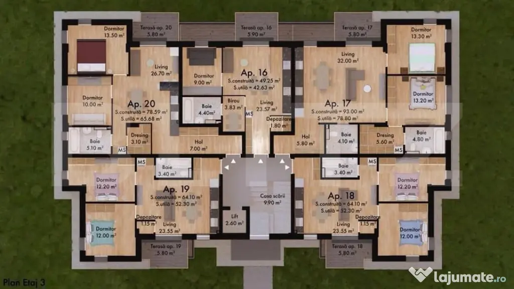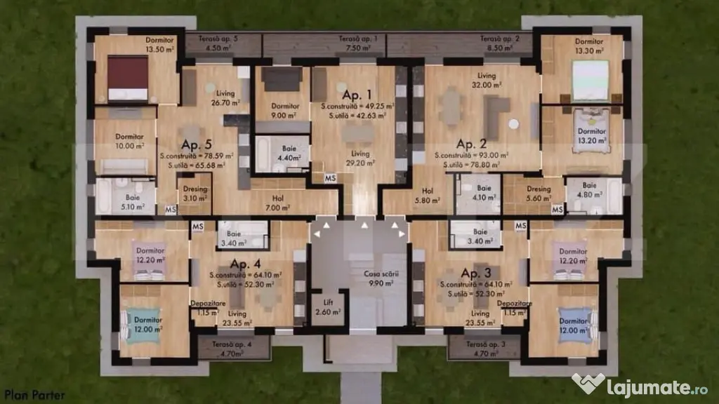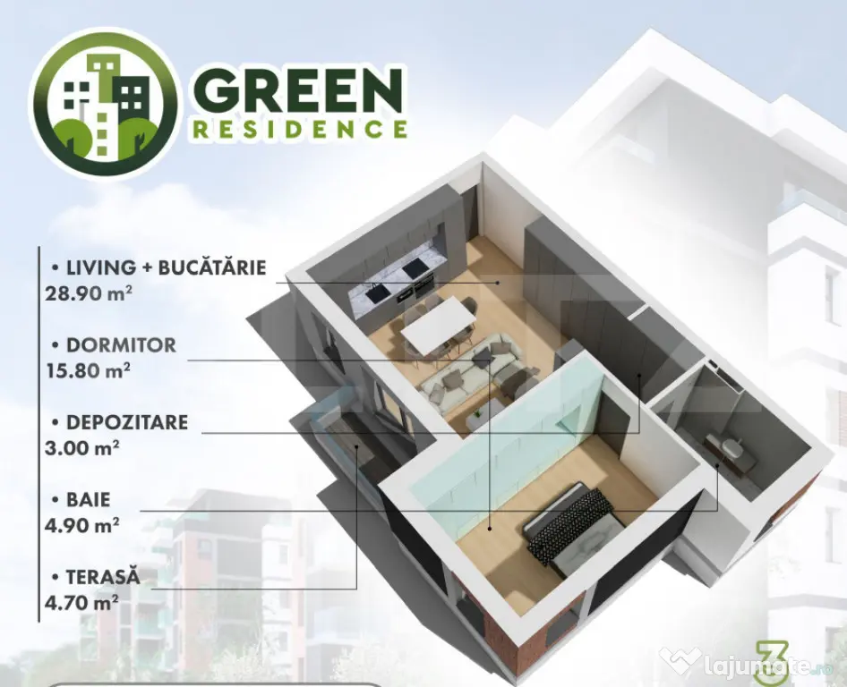 -Suprafața utilă spațioasă de 52.60 metri pătrați, optimizată pentru a te bucura de fiecare colț al locuinței tale.