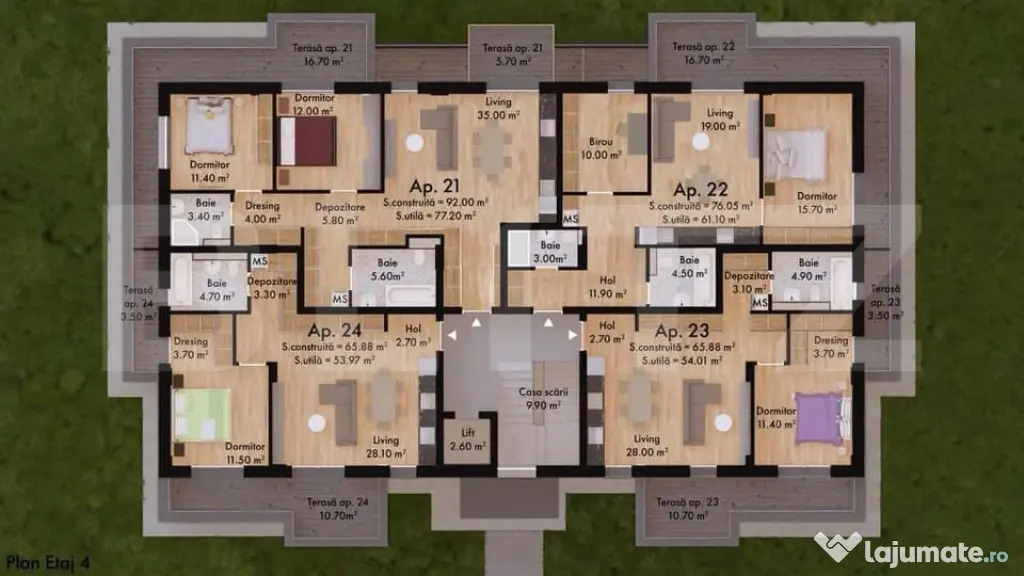 - Spații verzi și parcuri în apropiere, (peste 25% din suprafață complexului este destinata spațiilor verzi ) perfecte pentru a te bucura de natură și a petrece timp în aer liber.