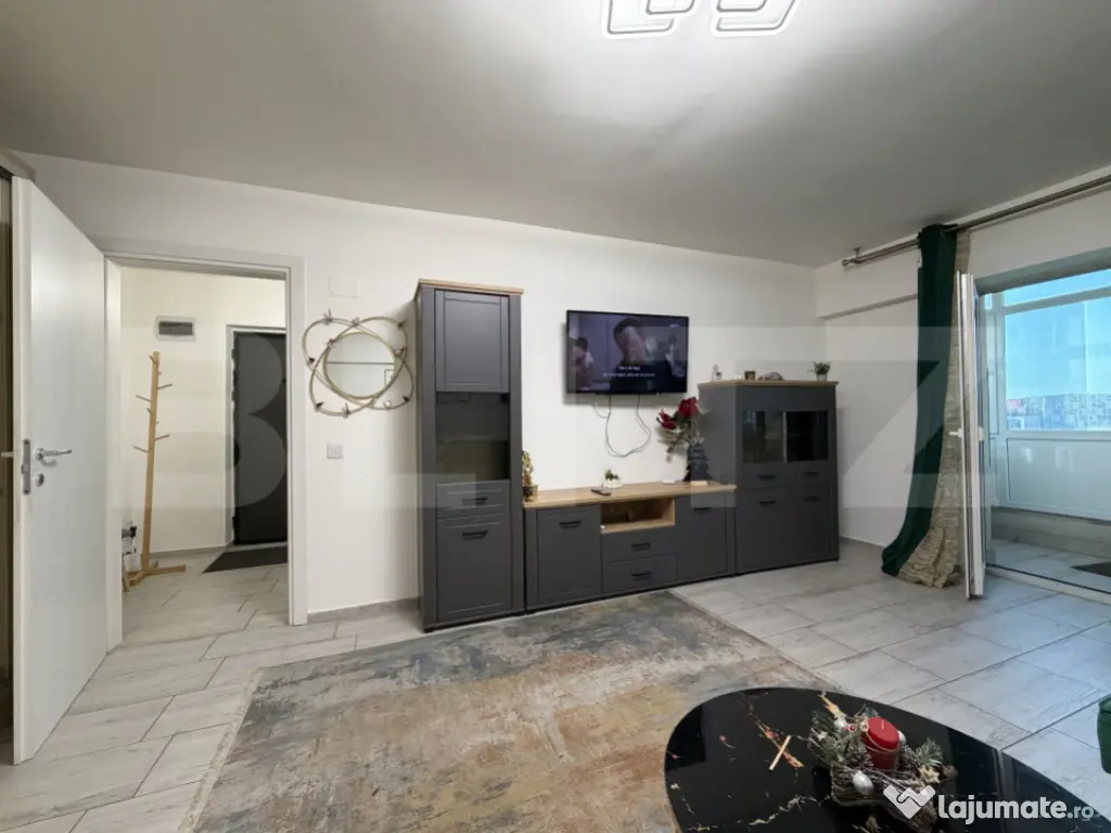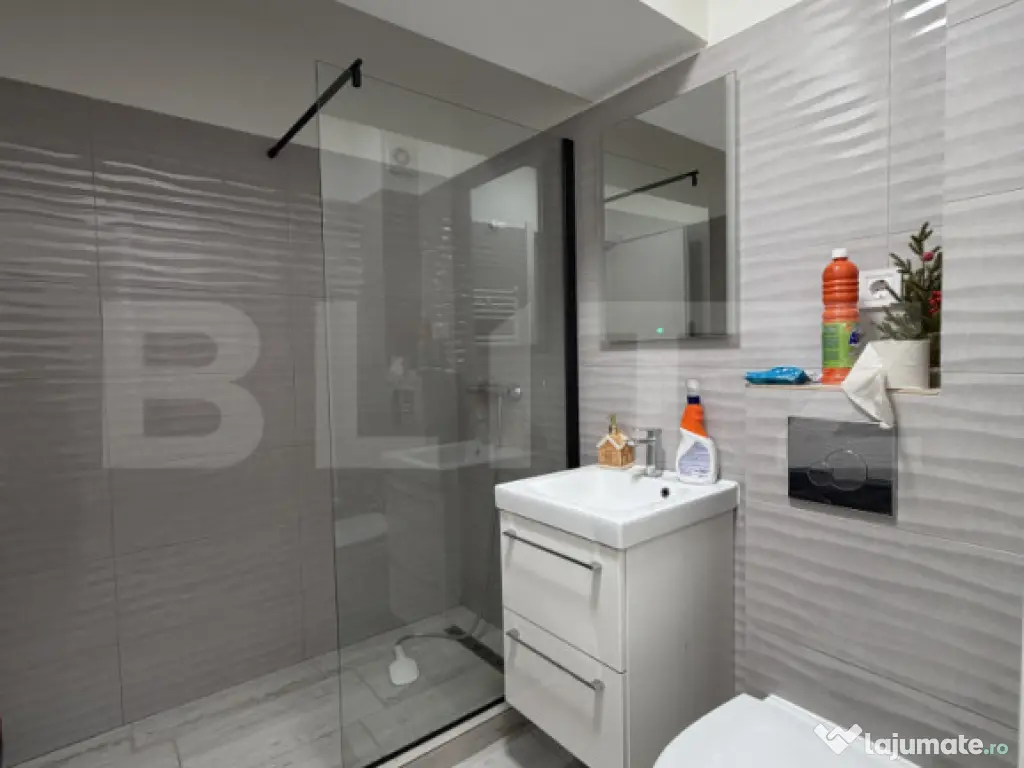 Blitz va propune spre inchiriere un apartament cu 2 camere decomandate la etajul 4/8 cu lift, intr-un bloc nou situat in zona garii/ Petrom. Apartamentul are incalzire prin pardoseala, centrala proprie, si se inchiriaza mobilat-utilat. Pentru anotimpul cald, avem aer conditionat. Bucataria este mutata pe balcon si are zona de gatit cu hota, aragaz, cuptor cu microunde si zona de servirea a mesei. Dispune de 2 locuri de parcare in cadrul parcării proprii a blocului. Disponibil imediat! Cod ofertă / ID BLITZ: P166325 Id intern: P166325 Confort: 1 Tip imobil: Bloc de apartamente Număr Băi: 1 Nr. locuri parcare: 2