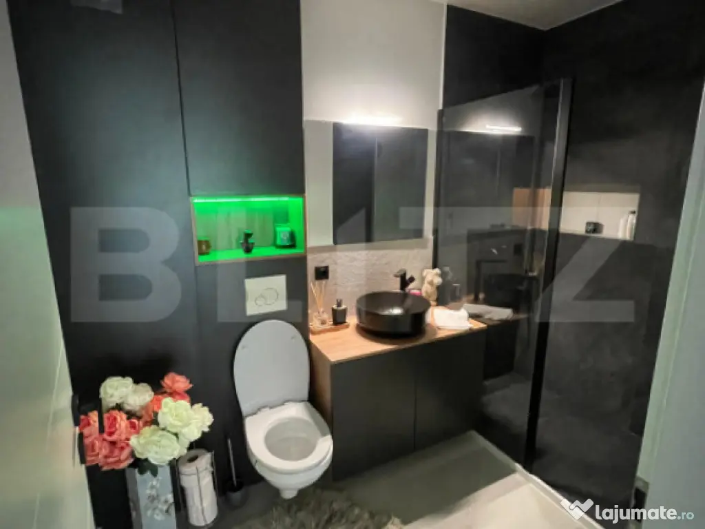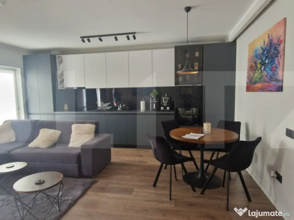 Vă propun spre vânzare un apartament modern, cu 2 camere, situat într-un bloc nou, finalizat în 2023, dotat cu lift și parcare subterană **cu CF inclus pentru apartament**. Locuința este compartimentată eficient și este formată din: * **Living cu bucătărie open-space** * **Dormitor spațios** * **Baie modernă** * **Terasă de 12 mp** cu priveliște superbă către pădure Apartamentul se vinde **complet mobilat și utilat**, exact ca în fotografii – totul nou și în stare excelentă. Terasă este orientată spre **vest**, ceea ce înseamnă dimineți liniștite și seri deosebite la apus, cu un view natural și relaxant. Este ideal atât pentru locuit, cât și pentru investiție. Dacă doriți mai multe detalii sau o vizionare, mă puteți contacta cu încredere! Cod ofertă / ID BLITZ: P158769 Id intern: P158769 Confort: 1 Tip imobil: Bloc de apartamente Număr Băi: 1 Nr. locuri parcare: 1