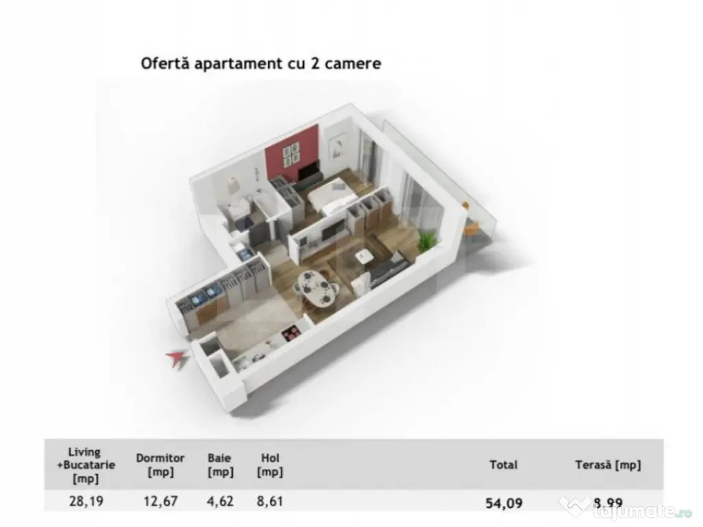 Blitz va propune spre vanzare un apartament de 2 camere, 54 mp , etaj intermediar, in cel mai EXLUSIVIT ansamblu din Cluj, zona Centrala . Apartamentul are o suprafata utila de 54 mp si este compartimentat astfel: Living cu bucatarie open space, un dormitor, o baie, si un balcon de 9 mp. Apartamentul dispune de orientare Estica si are o priveliste superba asupra orasului. Imobilul se afla intr-o zona cu acces facil spre mijloace de transport, scoli, mall, universitati , parcuri cat si spre centrul orasului. Apartamentul se vinde la stadiul de semifinisat. La parterul ansamblului va fi o zona comerciala , care o sa cuprinda o gama de activitati ce faciliteaza indeplinirea activitatilor de rutina zilnica. Exista posibilitatea de achizitie a unei parcari subterane la pretul de 25.000 euro +TVA Pentru a afla cat mai multe informatii despre acest ansamblu, va asteptam sa il vizionam impreuna. Preturile nu includ TVA. Cod ofertă / ID BLITZ: P102572 Id intern: P102572 Confort: 1 Tip imobil: Bloc de apartamente Număr Băi: 1 Nr. locuri parcare: 1