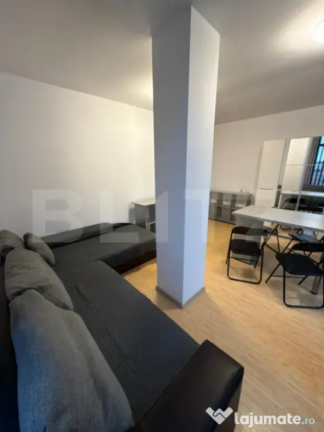 Blitz oferă spre închiriere un apartament cu 2 camere, mobilat și utilat modern. Imobilul are o suprafață utilă de 55 mp plus o terasa generaasa. Este situat la etajul 4 al unui bloc nou, cu regim de înălțime P+4 cu lift. Apartamentul este decomandat fiind compus din living, bucătărie, dormitor, hol, baie si o terasa. Se închiriază complet mobilat și utilat, conform standardelor actuale de confort. Proprietatea beneficiază de o localizare avantajoasă, în apropierea transport, magazine, băncii, facultate de inginerie. Acesta este disponibil imediat.