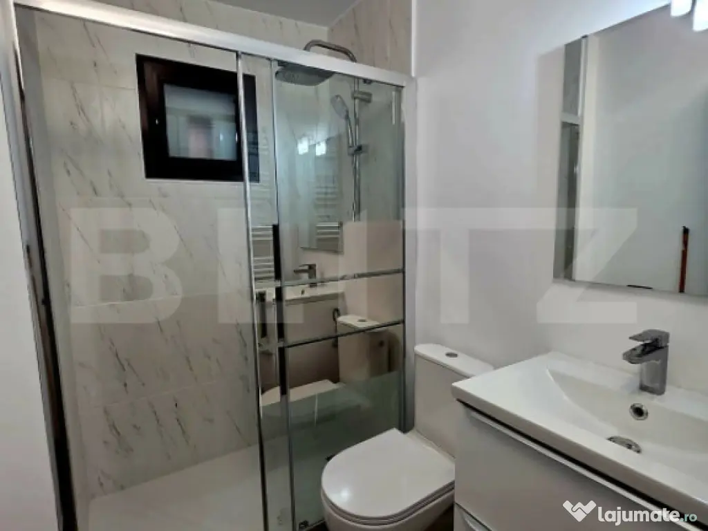 Blitz vă propune spre închiriere un apartament cu 2 camere, situat la parterul unui imobil cu 10 etaje, în zona Micro 5 din Târgoviște. Locuința are o suprafață utilă de 55 mp și a fost renovată integral în anul 2026, fiind la prima închiriere. Apartamentul este complet mobilat și utilat, beneficiind de finisaje moderne și de mobilier nou, ales cu atenție pentru confort și funcționalitate. Compartimentarea este eficientă, oferind un spațiu aerisit și bine organizat, ideal pentru un cuplu sau o persoană care își dorește un ambient modern și liniștit. Printre dotări se regăsesc aer conditionat, frigider, mașină de spălat, aragaz și televizor, toate în stare nouă, gata pentru utilizare imediată. Imobilul este amplasat într-o zonă cu acces facil către magazine, mijloace de transport, școli și alte puncte de interes, oferind un echilibru ideal între confort și accesibilitate. Apartamentul este disponibil imediat și se închiriază la prețul de 500 euro/lună. Pentru mai multe detalii sau pentru a programa o vizionare, vă stăm cu plăcere la dispoziție. Cod ofertă / ID BLITZ: P168199 Id intern: P168199 Confort: 1 Tip imobil: Bloc de apartamente Număr Băi: 1