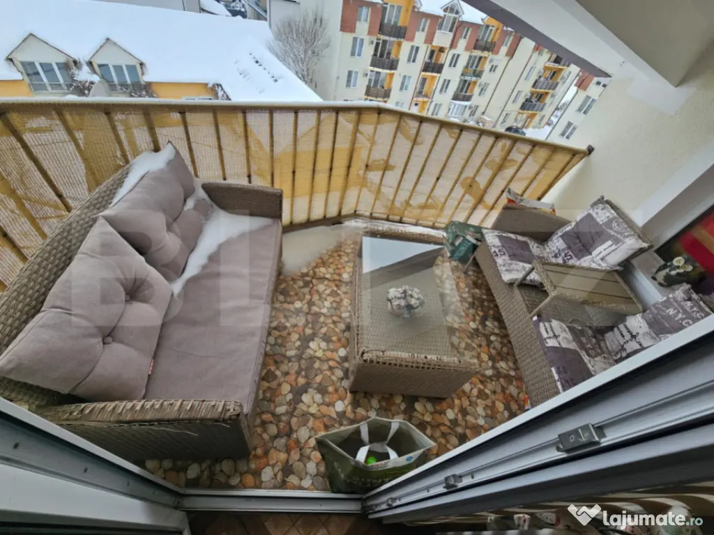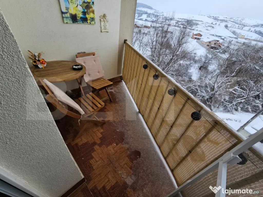 Blitz ofera spre vanzare apartament cu doua camere. Apartamentul este situat la etajul 4 din 4 , orientare sud-est, cu suparafa utila de 55 mp. Este compartimentat astfel: living complet mobilat, hol, buctarie complet mobilata si utilata, baie, 1 dormitor modern complet mobilat. Este un apartament luminos si calduros, situat intr-o zona foarte linistita. Apartamentul este dotat cu centrala termica proprie, faianta in bucatarie si baie, parchet dublu stratificat,tot mobilierul este din MDF de inalta calitate, apartamentul. Cele doua balcoane ofera o liniste deosebita si un peisaj mirific. Dispune de un loc de parcare. Cod ofertă / ID BLITZ: P161354 Id intern: P161354 Confort: 1 Tip imobil: Bloc de apartamente Număr Băi: 1 Nr. locuri parcare: 1