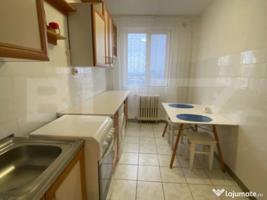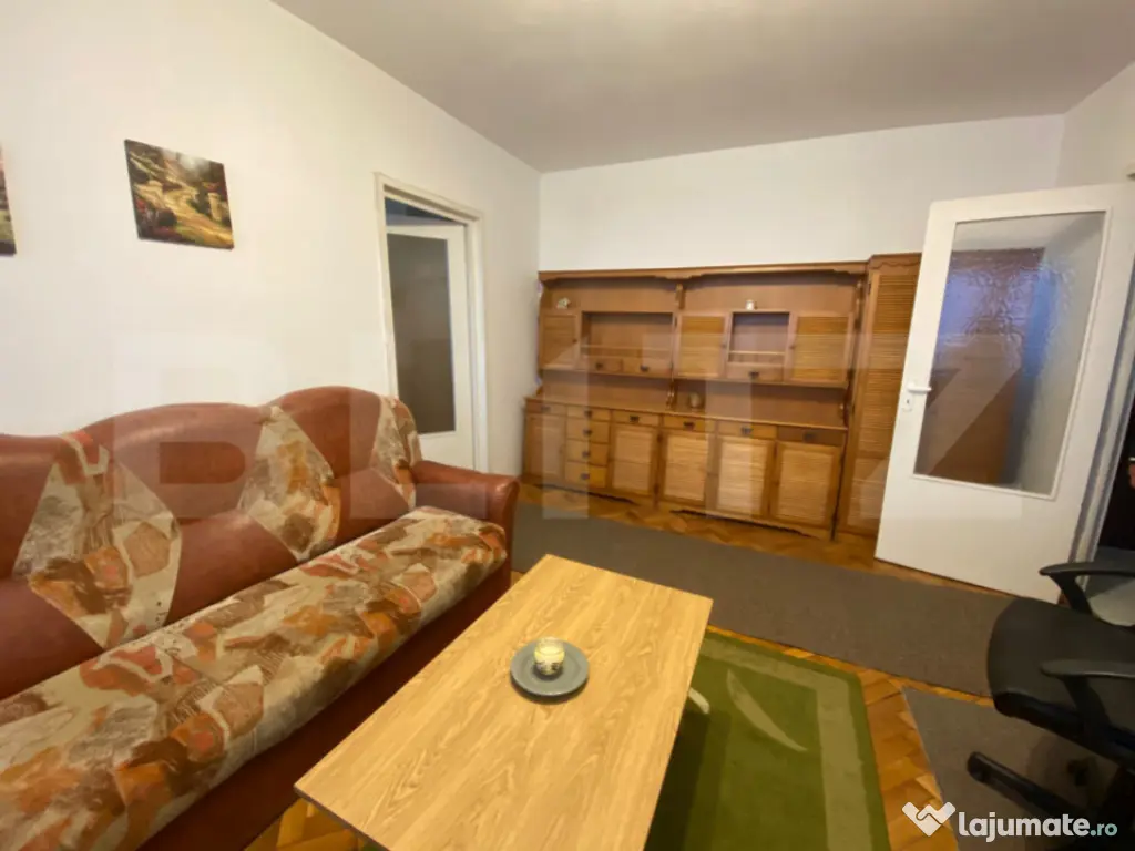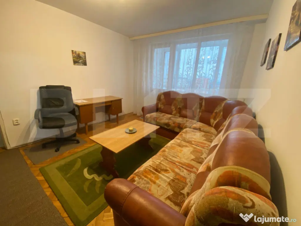 Blitz oferă spre închiriere un apartament complet mobilat, cu o suprafață de 56 mp. Apartament luminos, eficient compartimentat, ideal pentru o persoană sau un cuplu. Este compus dintr-un dormitor cu TV și spații de depozitare, sufragerie, bucătărie separată, baie cu cadă, hol cu spații de depozitare și un balcon închis. Se închiriază complet mobilat și utilat, fiind disponibil pentru mutare imediată. Încălzirea este centralizată (de la stat), fără centrală proprie, iar blocul este dotat cu lift. Condiții: ❌ Nu se acceptă animale de companie ???? Pentru detalii suplimentare și programarea unei vizionări, nu ezitați să ne contactați. Cod ofertă / ID BLITZ: P163019 Id intern: P163019 Confort: 1 Tip imobil: Bloc de apartamente Număr Băi: 1