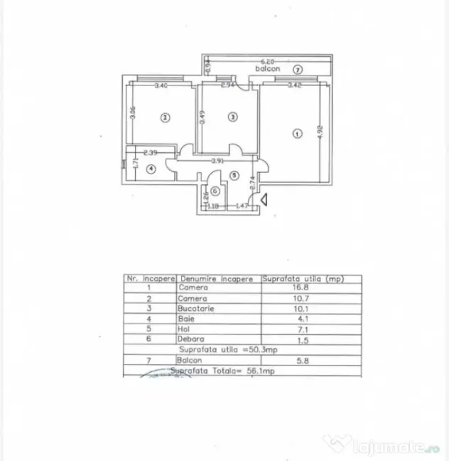 Apartament 2 camere, confort 1 decomandat, suprafata totala 56mp, zona Vidin, etaj 3/4.