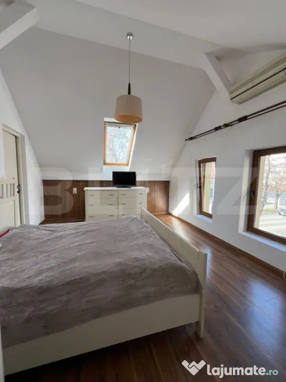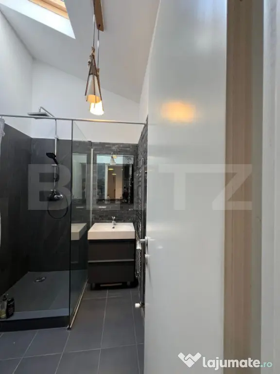 Blitz va prezinta un apartament cochet de 58 mp, situat la etajul 1 (tip mansardă), într-o clădire cu funcțiuni multiple. Compartimentarea este practică și primitoare: living luminos cu bucătărie open-space, dormitor spațios și baie. Amplasat într-una dintre cele mai căutate zone din Gheorgheni, la câțiva pași de Interservisan, Iulius Mall și bulevardul Nicolae Titulescu.