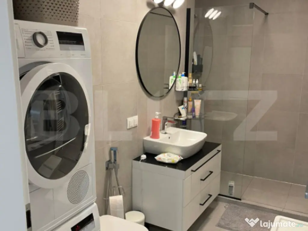 Blitz va propune un apartament modern cu 2 camere de vânzare în cartierul Maurer Residence, situat într-un bloc nou, la etajul 7 din 10. Proprietatea este complet mobilată și utilată, include loc de parcare teran și boxă la subsol, fiind ideală atât pentru locuință personală, cât și pentru investiție. Suprafața utilă este de 59 m², compartimentată eficient, oferind o locuință luminoasă și practică. Apartamentul este gata de utilizare, fără a necesita investiții suplimentare. Compartimentare: -Hol generos la intrare -Bucătărie separată, complet utilată -Living spațios cu canapea, zonă de birou și TV -Dormitor confortabil -Dressing separat cu acces din dormitor -Baie dotată cu mașină de spălat și uscător -Balcon cu balustradă din sticlă Dotări și electrocasnice: -Electrocasnice de marcă: Whirlpool, Bosch, Samsung, Electrolux -Mobilier modern, în stare foarte bună -Zonă de lucru integrată în living -Dressing complet amenajat pentru depozitare eficientă Facilități: -Loc de parcare teran inclus -Boxă la subsol -Clădire dotată cu lift -Balcon -Scară interioară Încălzirea se realizează prin centrală termică pe gaz. Apartamentul este disponibil începând cu data de 15 ianuarie 2026. Cod ofertă / ID BLITZ: P158732 Id intern: P158732 Confort: 1 Tip imobil: Bloc de apartamente Număr Băi: 1