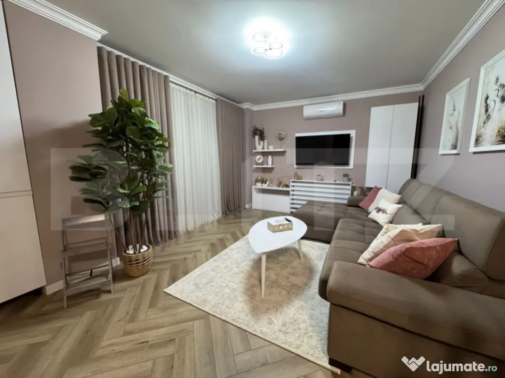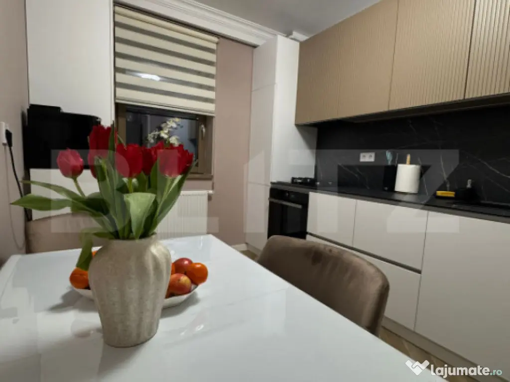 Blitz vă prezintă un apartament absolut superb, situat în Green Residence – cartier Tudor, aflat la prima închiriere și amenajat la standarde premium. Apartamentul are o Suprafață de 62 mp si se afla la etajul 4 al unui bloc nou cu 10 etaje . Apartamentul este amenajat cu atenție la fiecare detaliu și finisat la standarde înalte de calitate. Un spațiu rafinat, modern și extrem de primitor, ideal pentru cei care își doresc confort, eleganță și un stil de viață premium. Detalii care fac diferența: Finisaje premium, atent alese Mobilier realizat la comandă Electrocasnice noi, moderne și eficiente Bucătărie complet utilată Zonă de living luminoasă, cu design contemporan Dormitor elegant, amenajat în tonuri calde și relaxante Compartimentare practică și armonioasă Elemente decorative moderne și accente de lux Spațiul este aerisit, luminos și amenajat într-un stil modern-minimalist cu accente sofisticate, nuanțele calde și elementele aurii creează o atmosferă exclusivistă și elegantă. Bucătăria este complet echipată, cu mobilier realizat la comandă și electrocasnice noi, perfect integrate în design, inclusiv vesela si aparat de cafea. Livingul oferă un ambient relaxant, ideal atât pentru momente de liniște, cât și pentru socializare. Dormitorul este amenajat cu bun gust, oferind confort și intimitate. Balconul, locul de relaxare dimineata sau seara , este cu acces atata din living cat si din dormitor. Totul este nou, impecabil și pregătit pentru primul chiriaș. !!! Comision 0% la inchiriere !!!! Ideal pentru persoane care apreciază calitatea, bunul gust și confortul unui cămin modern. Cod ofertă / ID BLITZ: P164332 Id intern: P164332 Confort: 1 Tip imobil: Bloc de apartamente Număr Băi: 1