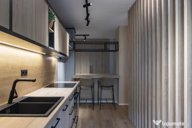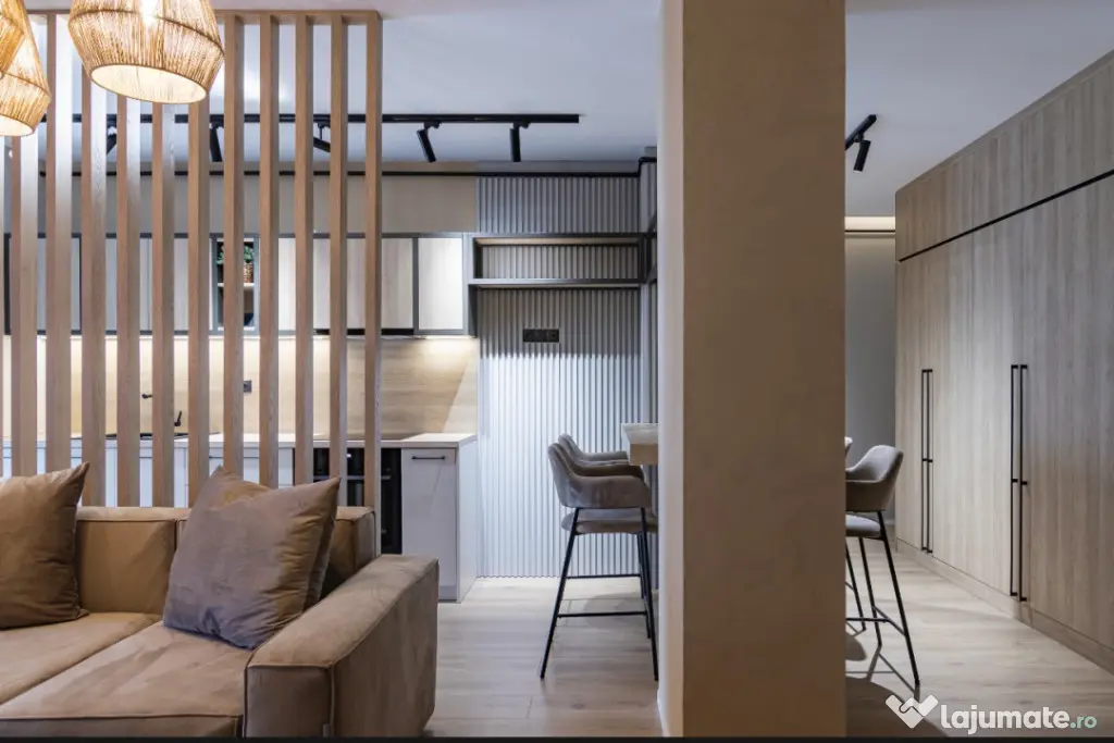 Apartamentul impresionează prin compartimentarea funcțională și finisajele de calitate: