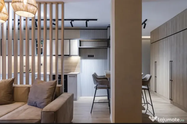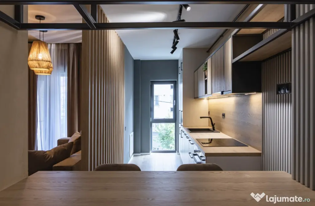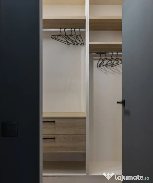 Locuința este închiriată full mobilată și utilată la standarde premium: două televizoare 4K, cuptor electric, plită, cuptor cu microunde, frigider, mașină de spălat și uscat rufe, mașină de spălat vase, hotă, set complet de veselă și tacâmuri, lenjerii, prosoape, perne și plapumă. Toate utilitățile sunt active: gaz, curent, internet și TV Digi, apă Vital.