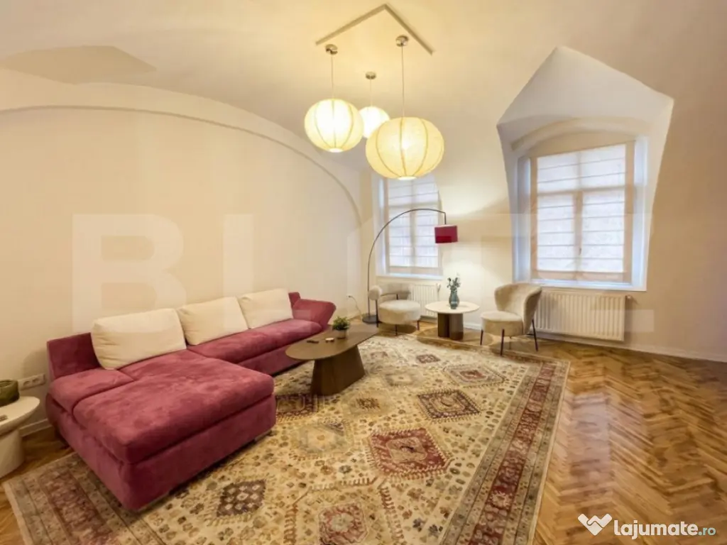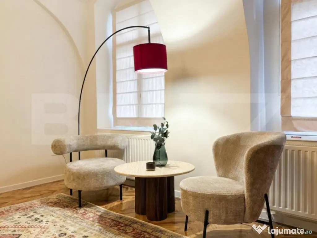 Blitz oferă spre închiriere un apartament deosebit cu 2 camere, recent recondiționat, aflat la prima închiriere, situat ultracentral, într-o zonă excepțională. Suprafață - Suprafață utilă: 65 mp Imobil - Apartament situat într-un ansamblu rezidențial amenajat într-o clădire istorică - Curte comună frumos amenajată - Ambient liniștit, cu acces facil către puncte de interes Compartimentare & dotări - 2 camere spațioase - Mobilier de calitate superioară - Apartamentul este complet mobilat și utilat - Pregătit pentru mutare imediată Avantaje - Prima închiriere - Locație ultracentrală - Finisaje și mobilier premium - Clădire cu caracter istoric și curte interioară Disponibil imediat ???? Pentru mai multe informații și programarea unei vizionări, vă rugăm să ne contactați telefonic. Cod ofertă / ID BLITZ: P163411 Id intern: P163411 Confort: 1 Tip imobil: Bloc de apartamente Număr Băi: 1