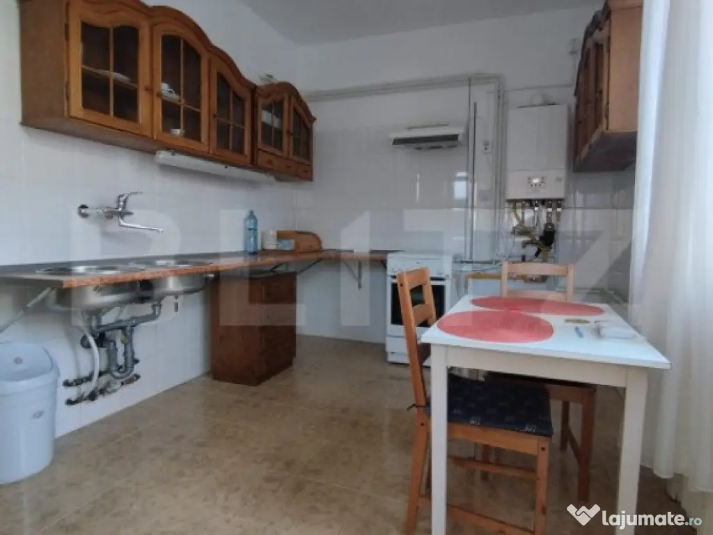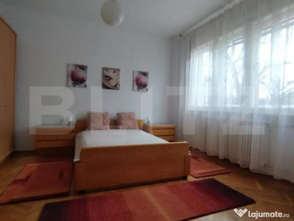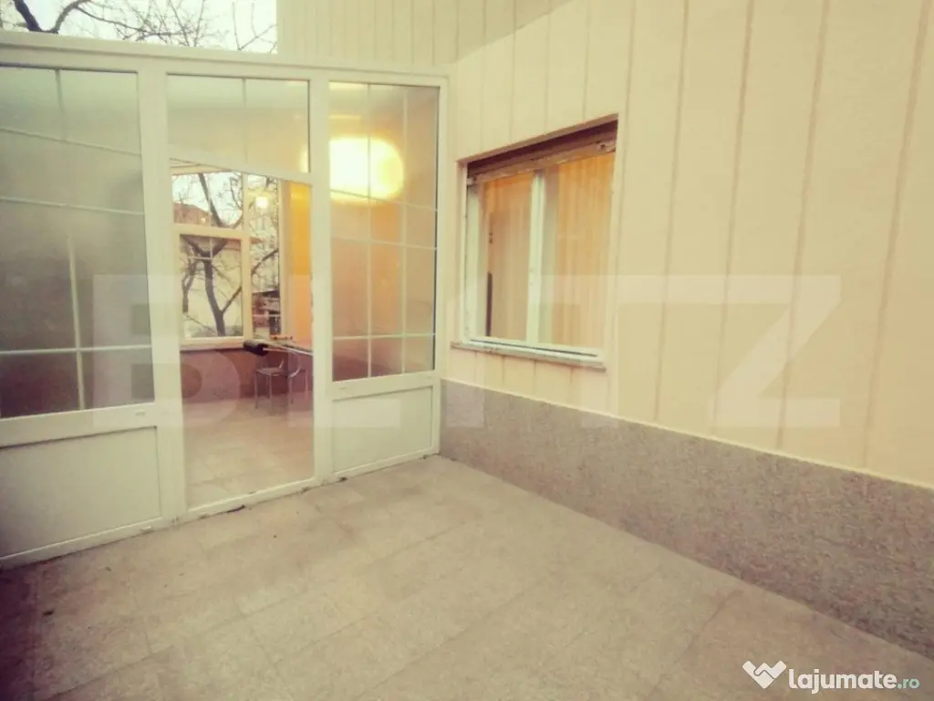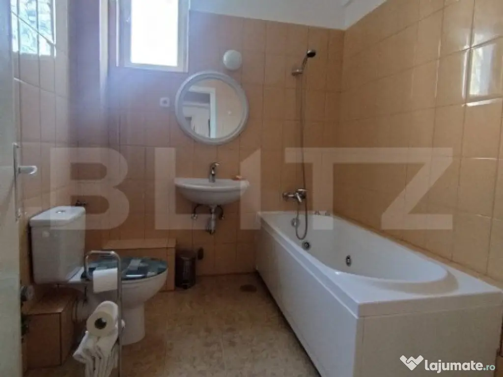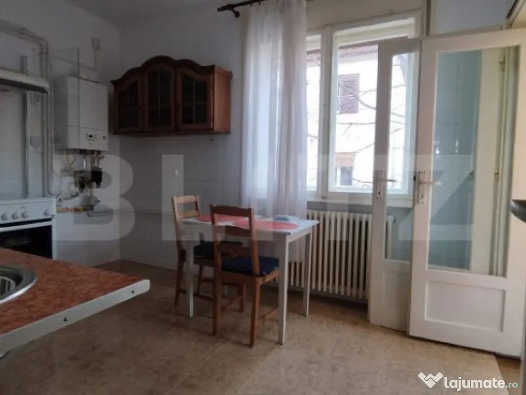 Blitz va propune spre vanzare un apartament deosebit situat la parterul inalt al unui imobil construit in anul 1970, avand garajul inchis cu telecomanda chiar sub apartament. Imobilul este construit din caramida, peretii avand o grosime de 40 cm, planseul este din beton iar podul este inalt, existand posibilitatea de amenajare, intreaga tamplarie este din lemn masiv, geamurile avand si rulori din lemn de tei, instalatia sanitara si electrica a fost schimbata recent totodata fiind facut si traseul pentru centrala, care urmeaza sa fie montat. Compartimentarea apartamentului este decomandata, dispusa astfel: hol acces generos de 12 mp cu acces pe terasa deschisa de 8 mp, 2 camere mari, bucatarie spatioasa cu acces pe o terasa de 25 mp, jumatate inchisa cu termopan iar cealalta jumatate deschisa, plus un spatiu de depozitare unde este montanta masina de spalat, cu o suprafata de 6 mp, baie mare cu cada. Desi se afla intr-o zona centrala, foarte aproape de Punctele Cardinale, imobilul este situat pe o straduta linistita,intr-o zona de case, avand totusi acces la mijloace de transport in comun, iar distanta pietonala pana in Piata Unirii este de 10 minute. Iar ca pachetul sa fie complet, in imobil sunt doar 6 apartamente iar printre locatarii se afla constructorul, proiectantul si arhitectul imobilului. Cod ofertă / ID BLITZ: P78765 Id intern: P78765 Confort: 1 Tip imobil: Casă/Vilă Număr Băi: 1 Nr. locuri parcare: 2