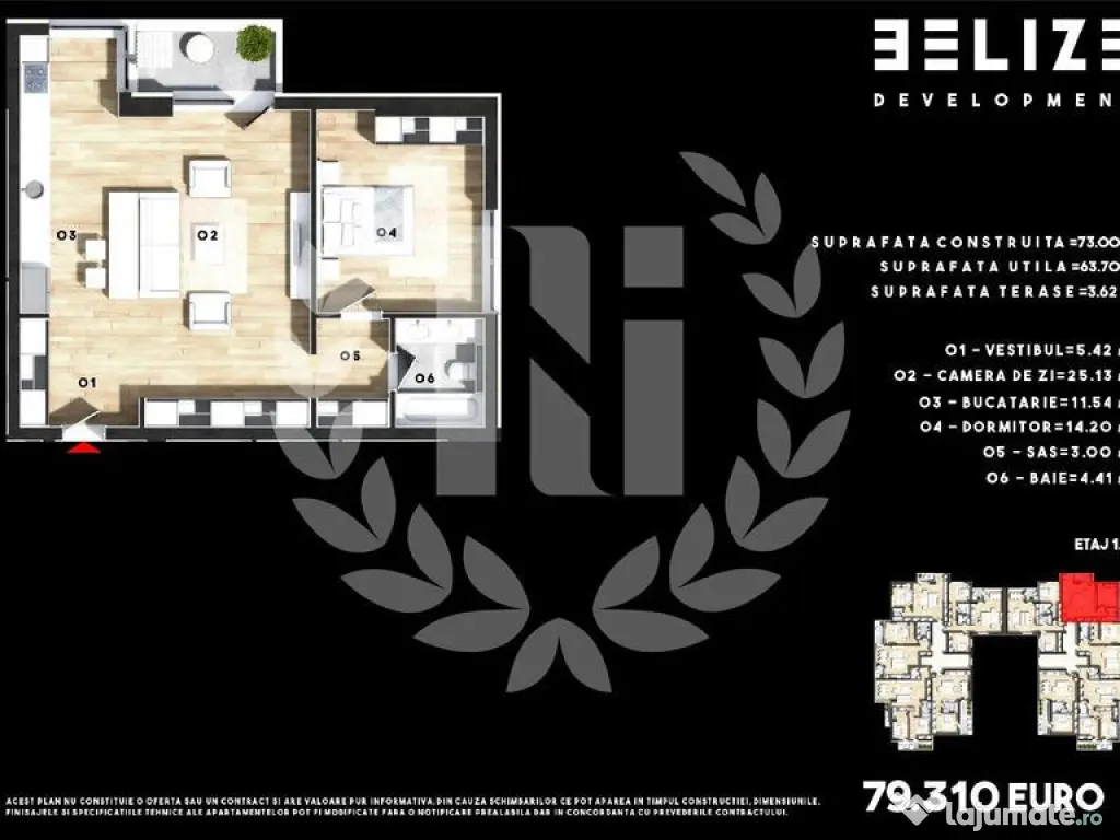 PROIECT FINALIZAT - PREDARE LA CHEIE DIRECT DEZVOLTATOR - COMISION 0 Natura, acasă la tine! Ansamblul rezidențial Belize Residence este amplasat pe în zona Cernica - Pantelimon (Ilfov), pe șoseaua Cernica, într-o zonă rezidențială în plină dezvoltare, aflat la doar 30 minute de centrul Bucureștiului şi la 10 minute distanță Cora Pantelimon şi Ikea Pallady, 12 minute distanță stația de METROU Nicolae Teclu, 15 minute de Mega Mall, 5 minute de Autostrada Soarelui şi la 1 minut de șoseaua de centură. La doar 300M se află staţia mijloacelor de transport public de stat pentru liniile 410 şi 459, dar şi staţia transportatorilor privaţi ce leagă Cernica de Capitală. Belize Residence Pantelimon oferă facilităţi deosebite, pază 24/24, supraveghere video, supermarket Mega Image în incinta complexului şi beneficiază în acelaşi timp de oază de linişte oferită de apropierea de pădurea Cernica şi de lacul Cernica, adevărate destinaţii de agrement pentru timpul liber. Ansamblul este format din 12 blocuri cu regim de înălţime parter+3/4 etaje şi dispune de 200 apartamente de 2 şi 3 camere, cu 215 locuri de parcare. Racordat la toate utilităţile şi distribuite pentru fiecare apartament: - Aprometre apă - Contoare gaze - Contoare curent - Canalizare - Iluminare stradală Dotări apartamente: - Lift Romversis Made în ITALIA - Centrală termică în condensare - Calorifere oţel - Tîmplărie PVC ferestre profil 6 camere - Uşi exterior Megadoor - Uşi interior Megadoor - Băi complet utilate cu obiecte sanitare - Izolaţie termică/acustică prin pereţi separatori cărămidă Apartamentele se predau la cheie după selecţia personalizată a finisajelor, parchet, gresie, faianţă, care se vor efectua din valoarea bugetului acordat. Parcări supraterane la cerere. Preţul locului de parcare este 2500 Euro +TVA Fotografiile au titlu de prezentare, mobilierul şi decorarea apartamentului se poate realiza la cerere. Finanţarea acestui imobil se poate efectua din surse proprii sau creditare bancară Finanțare Proprie și Bancară - 1000 Euro Avans la semnarea Contractului de Rezervare Imobiliară, valabil 14 zile - 5% - 15% Avans la semnarea Antecontractului de Vânzare Cumpărare în funcţie de bancă - Lichidarea diferenţei din preţul total al proprietăţii se achita la semnarea Contractului de Vânzare Cumpărare PREŢ 79.810 EUR TVA Puteti beneficia de consultanţă şi intermediere credit gratuită. LOC DE PARCARE SUPRATERAN 3.240 EURO + TVA *Apartamentul se vinde finisat, la cheie fără mobilier și electrocasnice. *Fotografiile prezentate sunt cu titlu informativ și sunt efectuate în cadrul complexlului, proiectul se poate realiza la cerere, contra cost. Confort: 1 Tip imobil: Bloc de apartamente Număr Băi: 1 Posibilitate parcare: Nu
