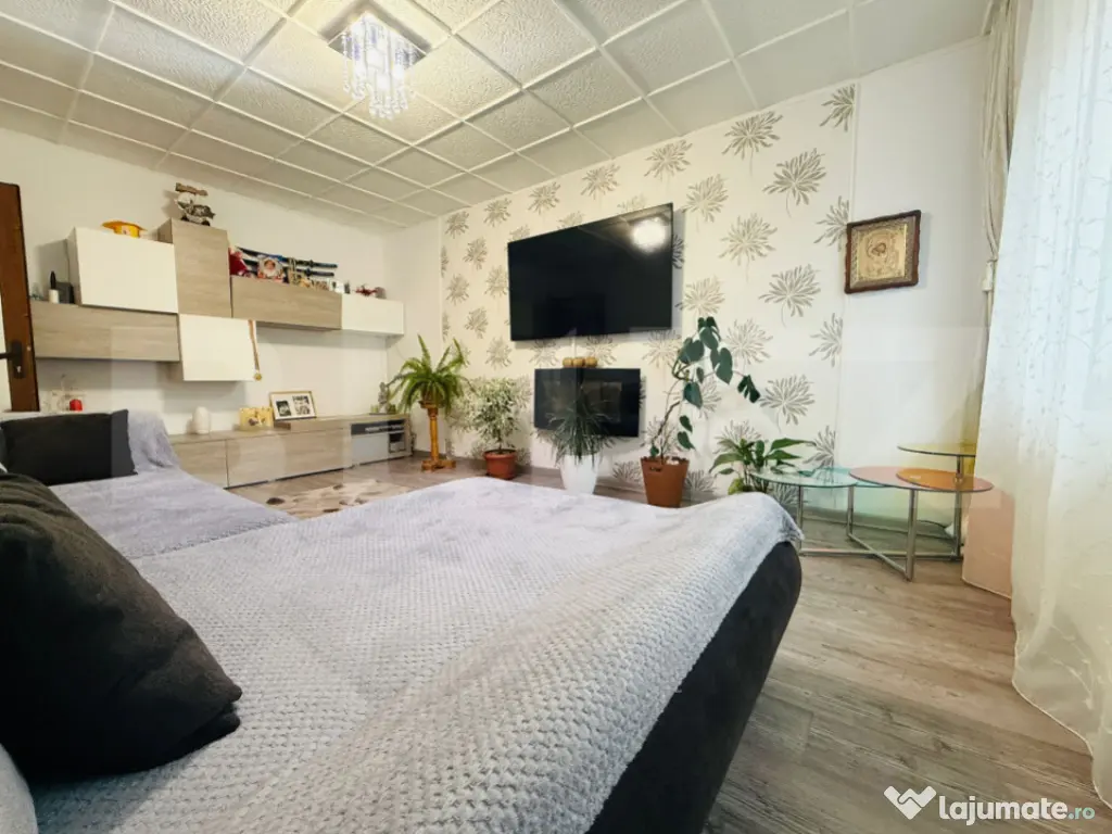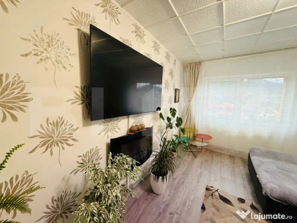 Blitz ofera spre vânzare un apartament de 2 camere situat în Săcele, la etajul 4 din 4, ideal pentru cei care își doresc un spațiu primitor, amenajat cu bun gust și cu o priveliște deosebită către munți. Locuința a fost renovată complet în urmă cu aproximativ 4 ani, folosindu-se materiale de calitate, fiind refăcută inclusiv instalația electrică în totalitate, ceea ce oferă un plus de siguranță și confort viitorilor proprietari. Apartamentul se remarcă printr-un design modern, atent ales, cu o atmosferă caldă și funcțională, fiind pregătit pentru mutare imediată. Compartimentare și dotări: Living luminos, cu acces la o vedere panoramică superbă spre munți Dormitor primitor Bucătărie complet mobilată și utilată Baie modernă, echipată cu mașină de spălat și uscător Centrală termică proprie și calorifere Se vinde mobilat și utilat, cu următoarele excepții: Bucătărie: rămân aragazul, cuptorul, mașina de spălat vase și mobilierul (NU rămân masa și frigiderul) Living: NU rămân canapeaua și televizorul Restul pieselor de mobilier și electrocasnicelor rămân în apartament Alte avantaje: Dispune de boxă pentru depozitare (mențiune: nu este inclusă în CF) Etaj superior – fără vecini deasupra Zonă liniștită, aer curat și acces facil către oraș Acest apartament este alegerea perfectă pentru cei care caută un cămin gata de locuit, într-o zonă cu peisaje deosebite și liniște. Cod ofertă / ID BLITZ: P169789 Id intern: P169789 Confort: 1 Tip imobil: Bloc de apartamente Număr Băi: 1
