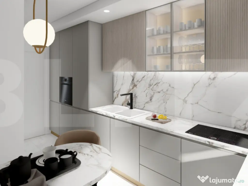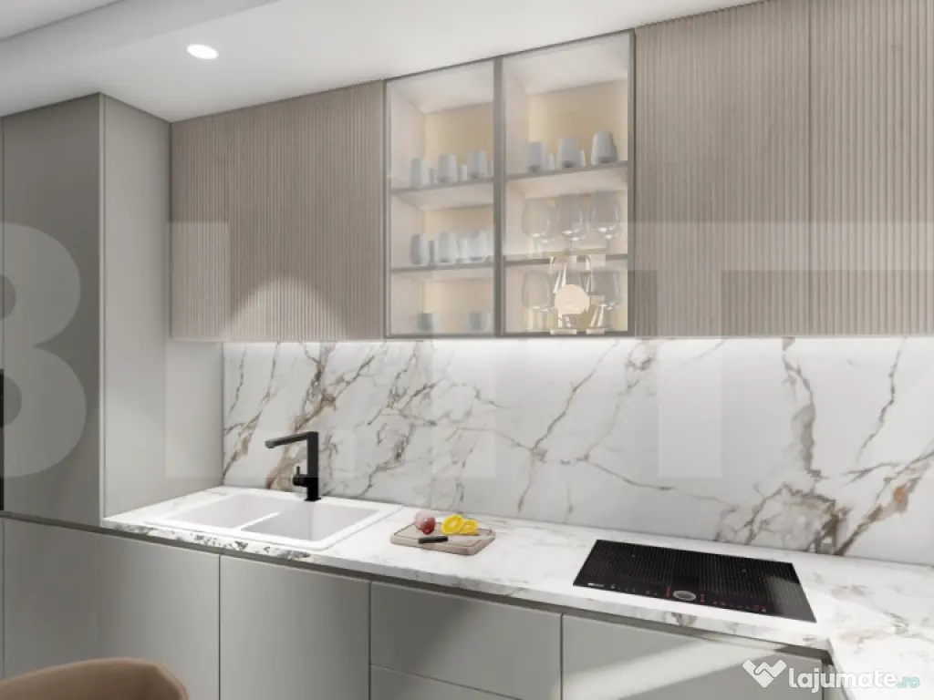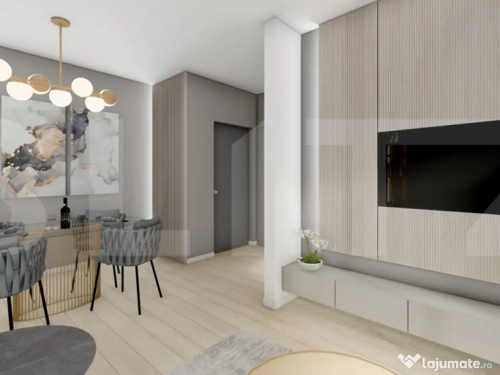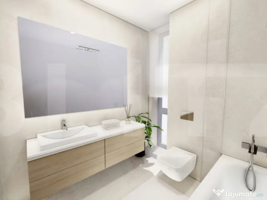 Blitz va propune sa descoperiti confortul și luminozitatea unui apartament modern, situat în ansamblul rezidențial Sepsi Domus - Sf.Gheorghe, un proiect nou, realizat cu grijă pentru calitate, eficiență energetică și design contemporan. Acest apartament cu două camere are o suprafață utilă de 56,4 mp și o suprafață construită de 80,1 mp, la care se adaugă o terasă generoasă de 8,5 mp, orientată către est. Locuința impresionează prin spațialitate și compartimentarea decomandată, oferind un living luminos cu bucătărie deschisă, dormitor separat, baie complet echipată și o terasă ideală pentru relaxare. Dotări și beneficii: Încălzire în pardoseală pentru un confort termic superior; Sistem de aer condiționat instalat; Ventilație cu recuperare de căldură pentru un climat interior sănătos; Panouri fotovoltaice pe clădire, care reduc costurile de energie; Lift modern și spații comune bine întreținute; Finisaje de calitate: gresie, faianță, parchet, uși interioare și vopsea lavabilă; Terasă spațioasă cu orientare estică, ideală pentru a te bucura de lumina dimineții; Compartimentare practică, cu zone de zi și de odihnă bine delimitate. Detalii suplimentare: Proiectul Sepsi Domus se află într-o fază avansată de construcție, cu livrare estimată în primăvara anului 2026. Prețul este cu TVA inclus, direct de la dezvoltator, fără comision pentru cumpărător. Contactează-ne pentru o prezentare completă a proiectului și pentru a alege apartamentul potrivit pentru tine. Cod ofertă / ID BLITZ: P155760 Id intern: P155760 Confort: 1 Tip imobil: Bloc de apartamente Număr Băi: 1