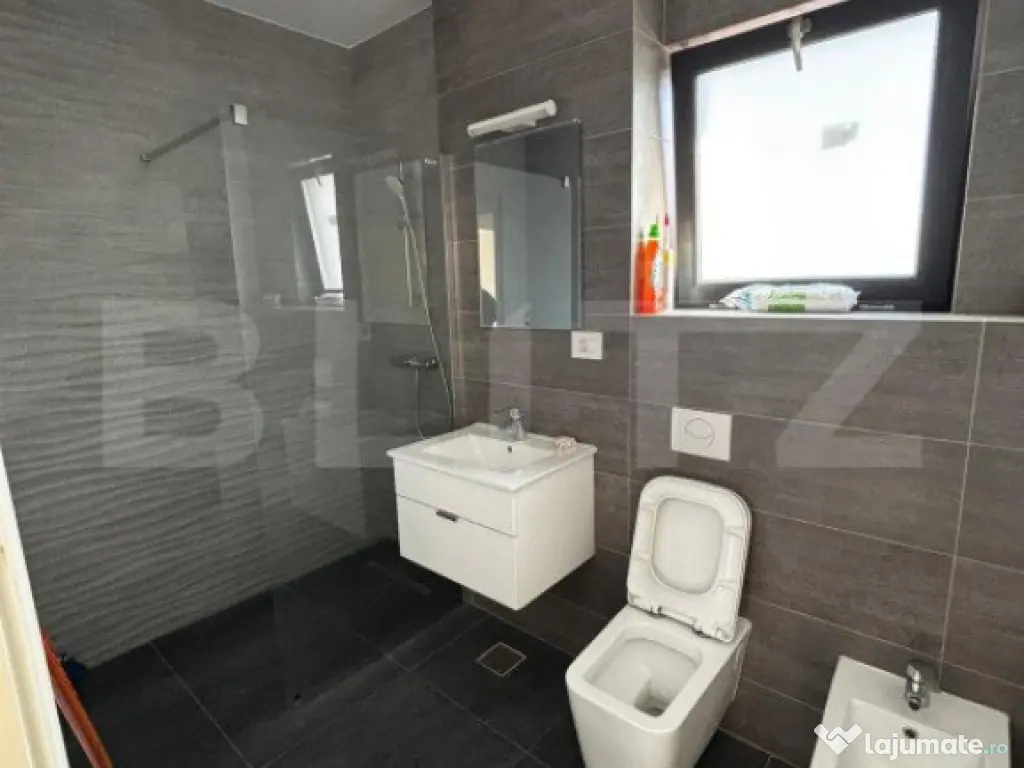 Toate sanitarele sunt deja montate, iar restul apartamentului este pregătit pentru a fi amenajat conform preferințelor tale.